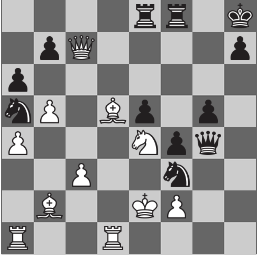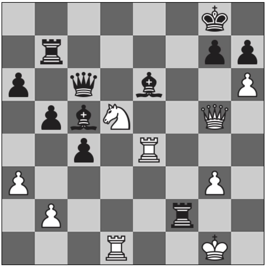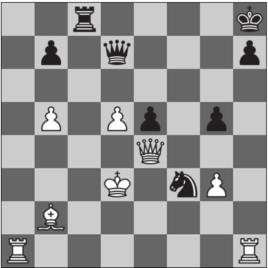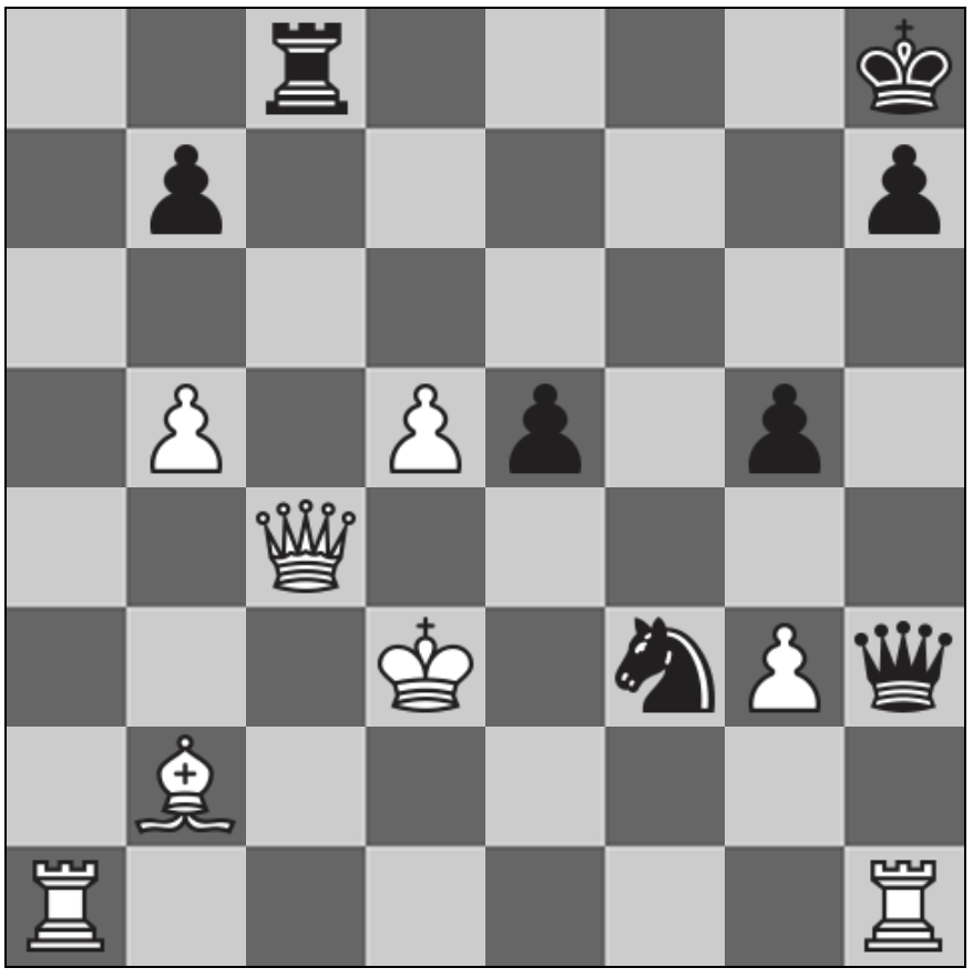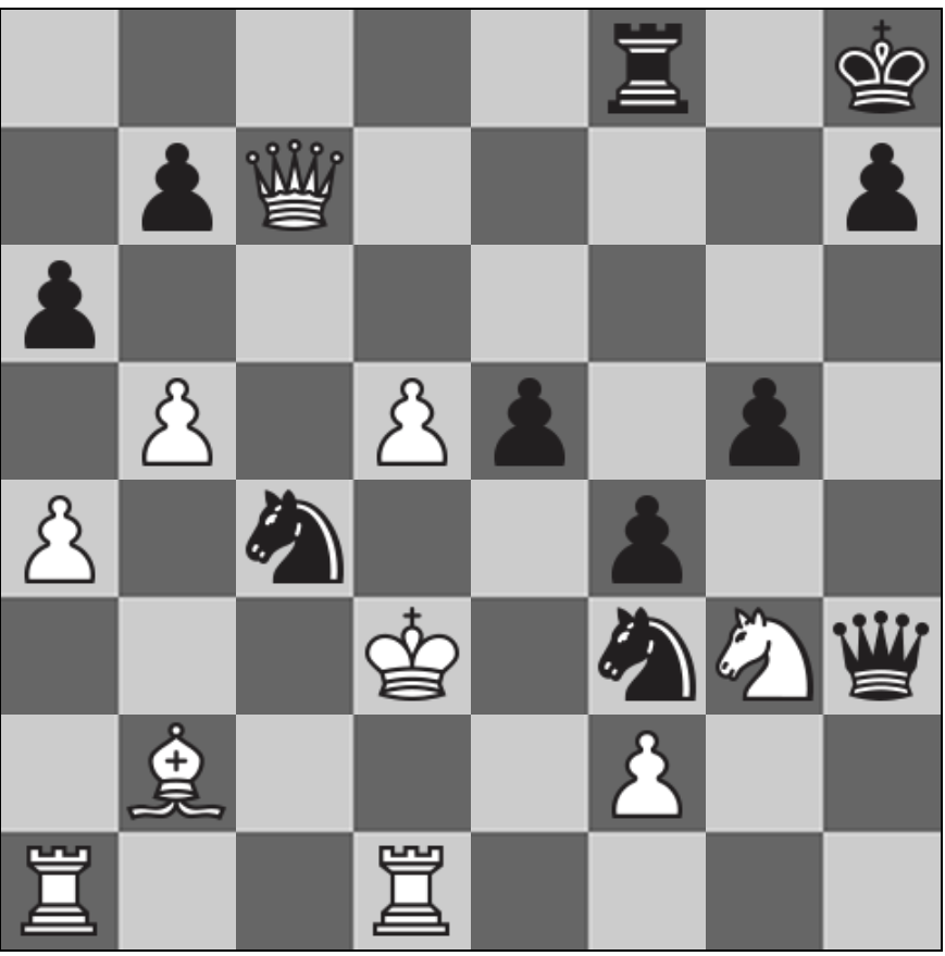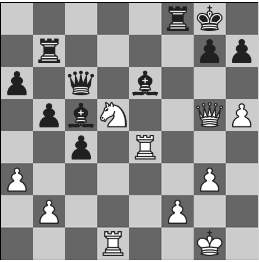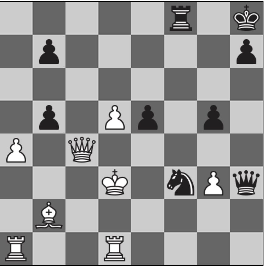 Черные объявляют шах конем на h4! Очевидно, Ян сдвинет короля на f1, но при этом после этого он может в несколько ходов поставить мат по диагонали — зависит от того, как дальше сыграет Фируджа! Верится с трудом, что француз не видит этой угрозы.