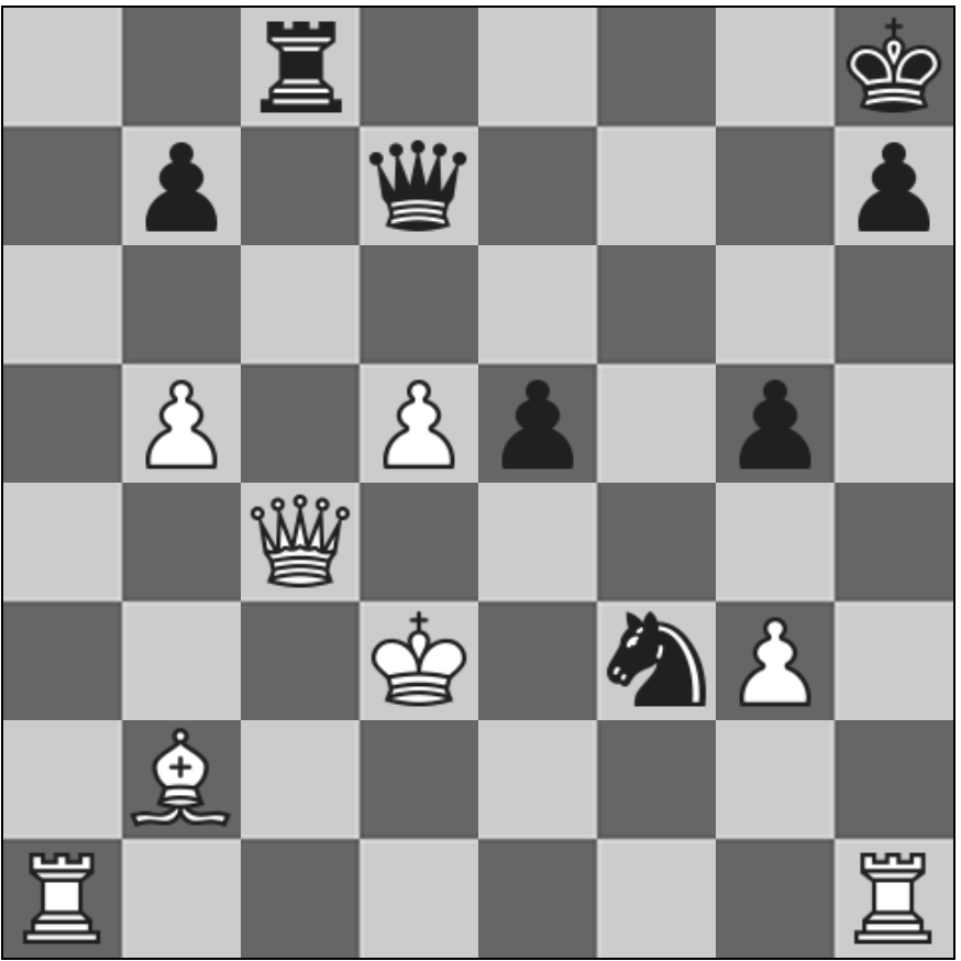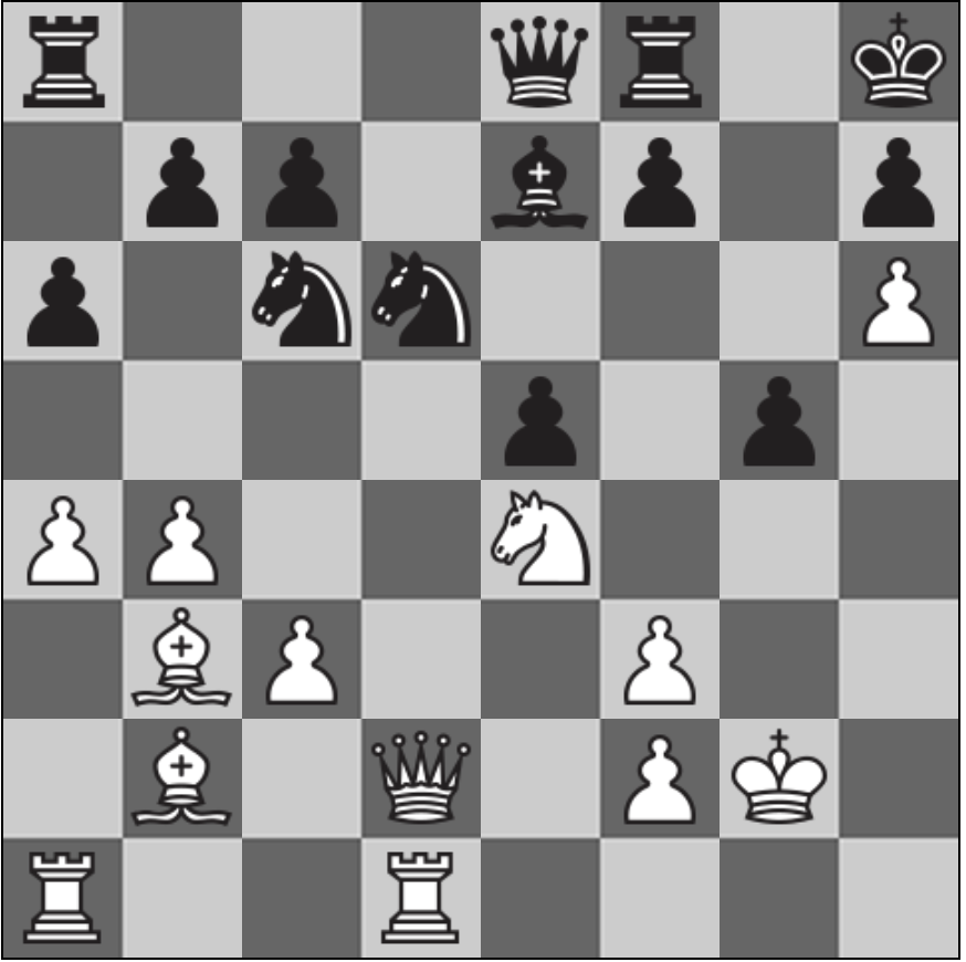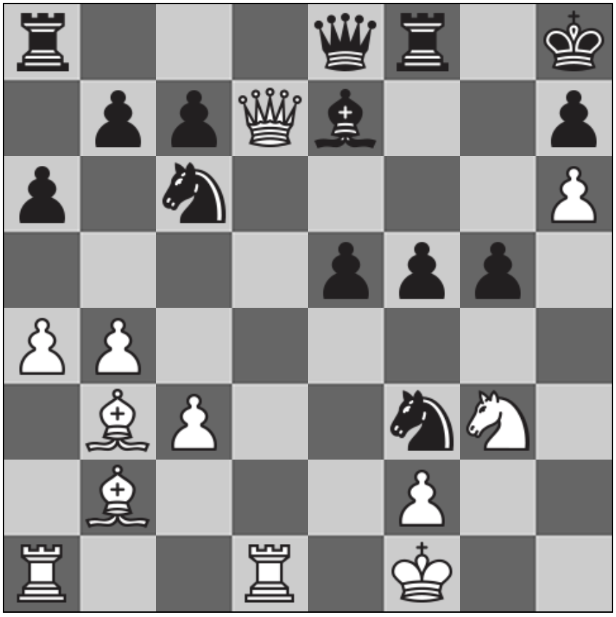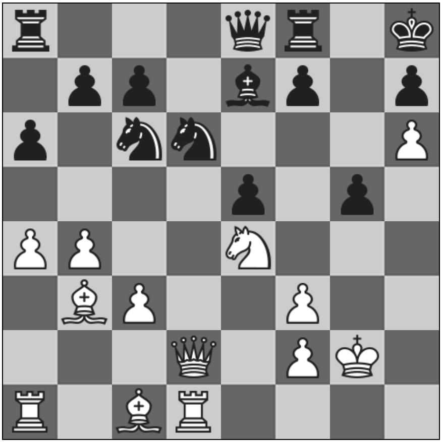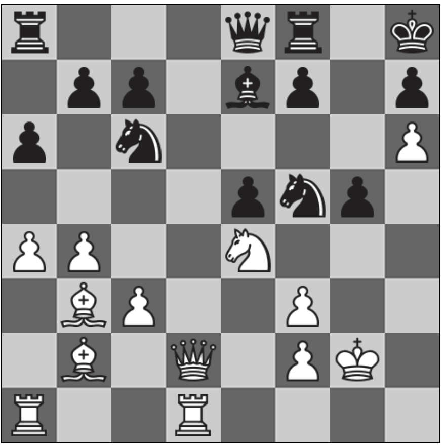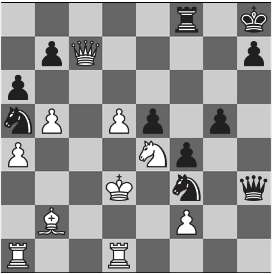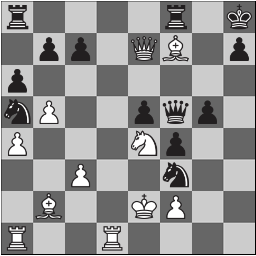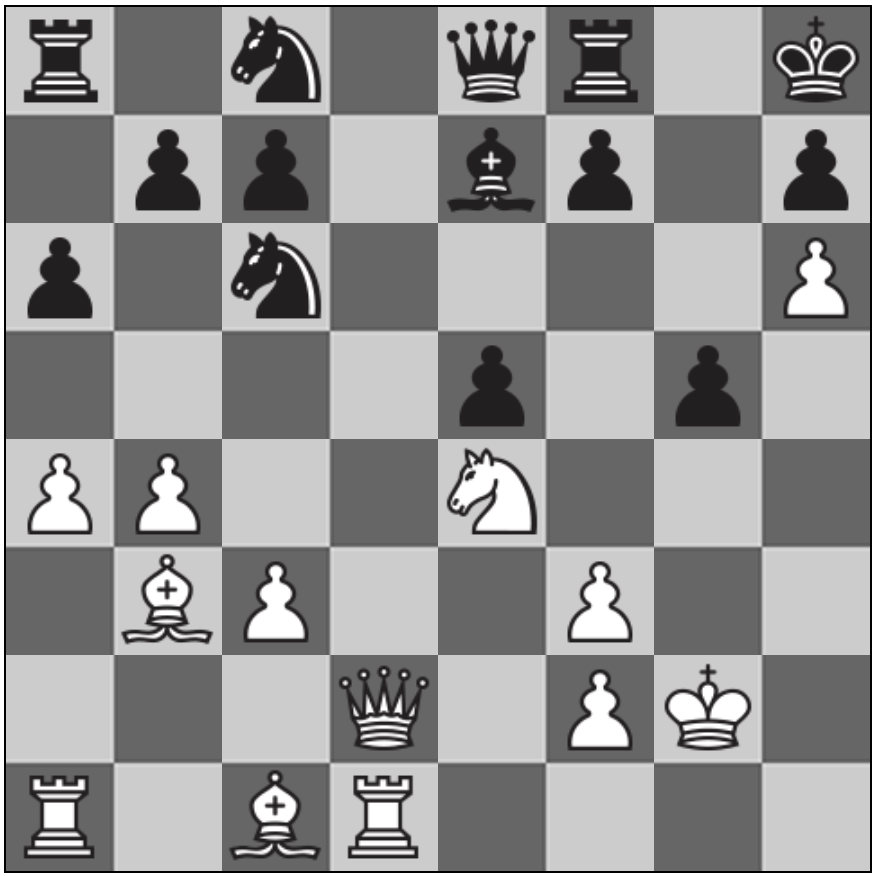 Черные объявляют шах конем на h4! Очевидно, Ян сдвинет короля на f1, но при этом после этого он может в несколько ходов поставить мат по диагонали — зависит от того, как дальше сыграет Фируджа! Верится с трудом, что француз не видит этой угрозы.