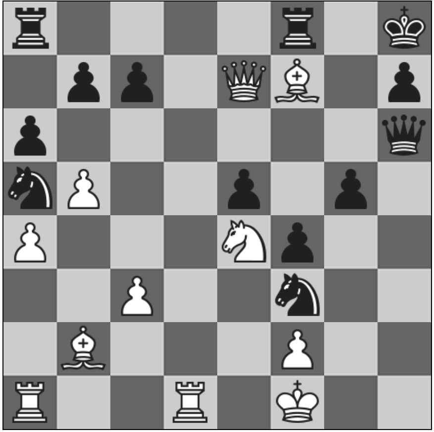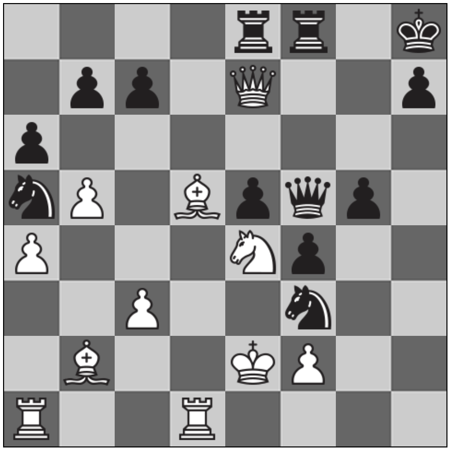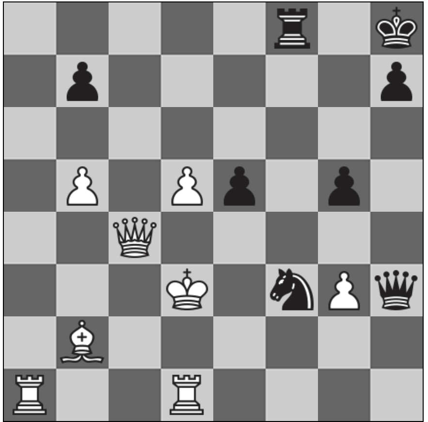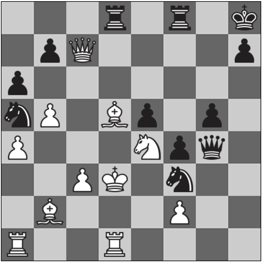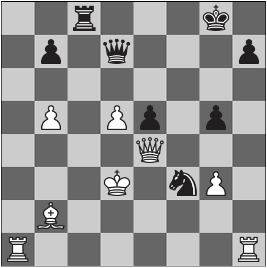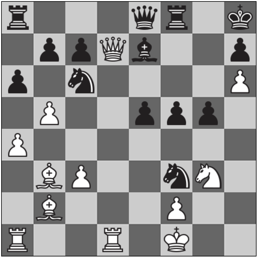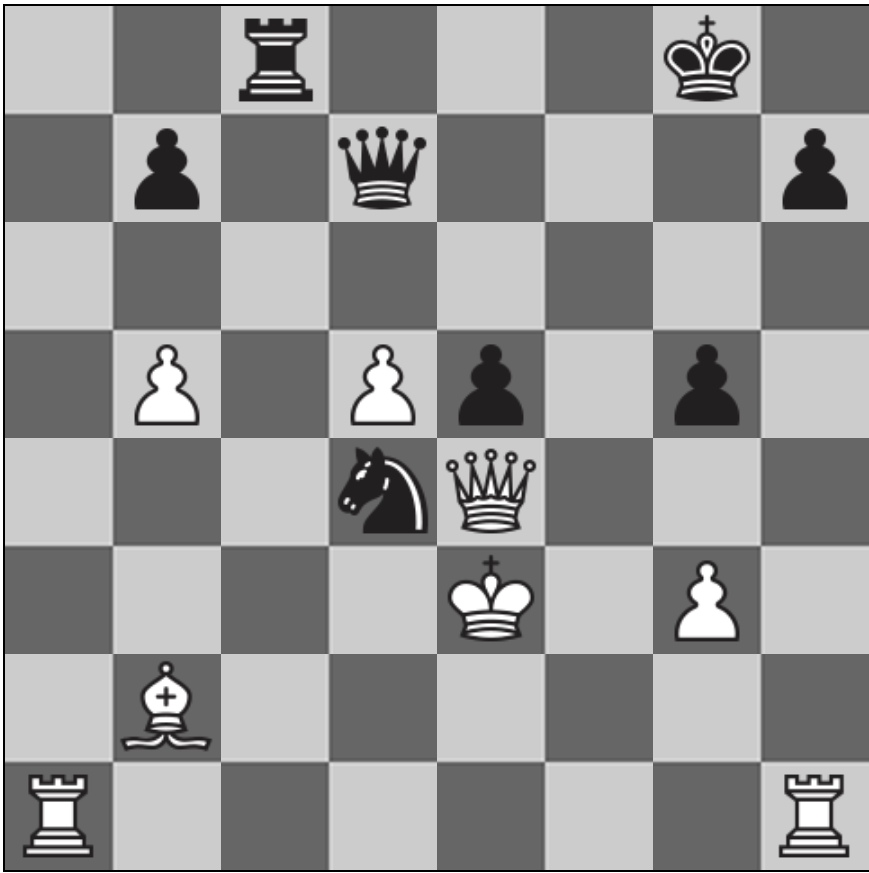 Черные объявляют шах конем на h4! Очевидно, Ян сдвинет короля на f1, но при этом после этого он может в несколько ходов поставить мат по диагонали — зависит от того, как дальше сыграет Фируджа! Верится с трудом, что француз не видит этой угрозы.
