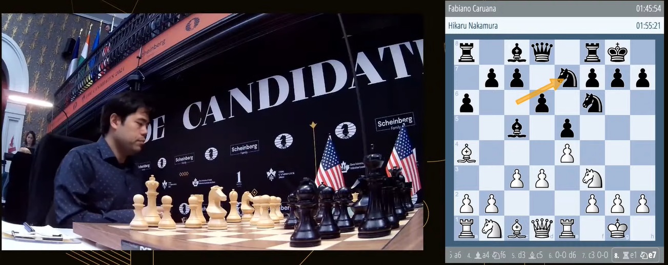 В партии американских гроссмейстеров Каруана отвел коня под давлением назад. Теперь думает Накамура.