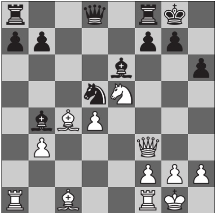 Хитрые схемы проворачивает Каруана. Очень изобретательно играет он черными против соотечественника. Забрал на d4 конем слона, которого убрала пешка Накамуры.