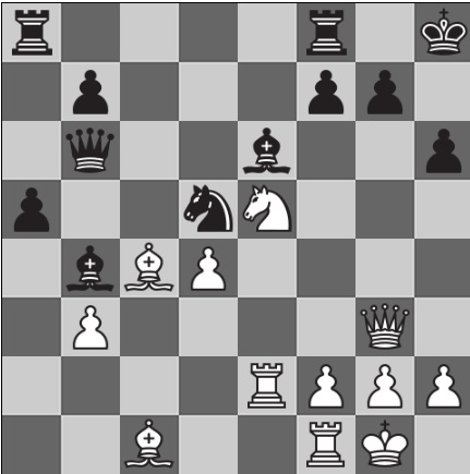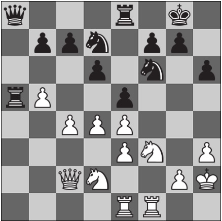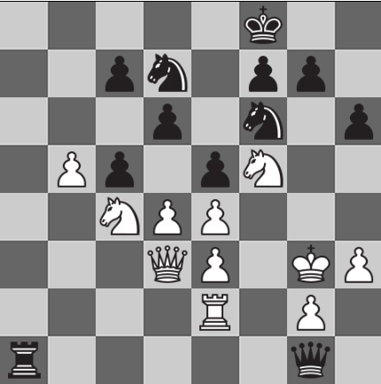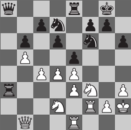 Гукеш продолжает развивать свое преимущество черными против Видита: 15... Qe8 16.Rae1 axb5 17.axb5 Ra5 18.c4 Qa8 19.h3 Re8 20.Kh2