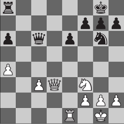 Как дела у Непомнящего? 19.Qg3 Kh8 20.Ra2 a5 21.Re2 Qb6 22.Re4 Nc3 23.Re3 Bxc4 24.Nxc4 Qxd4. А Ян наконец смог добиться преимущества! Удастся ли реализовать?
