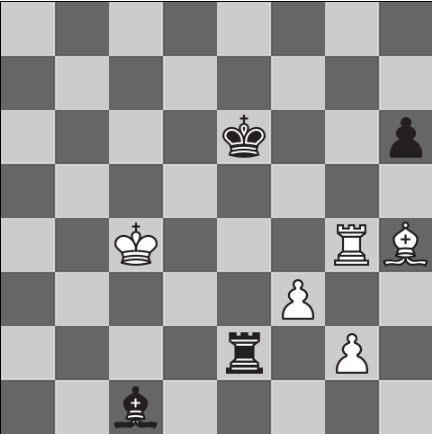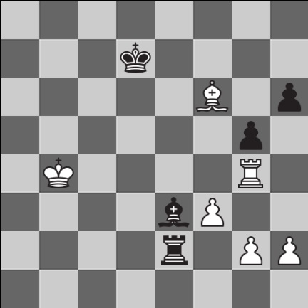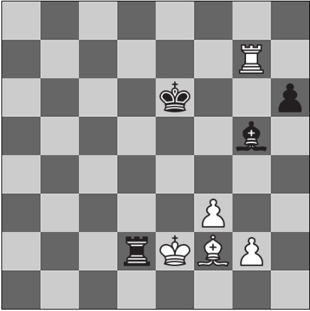 55 ходов позади. Россиянин еще и от шахов вынужден защищаться. 52.Rg7 Re5 53.Kd3 Bg5 54.Bf2 Rd5+ 55.Ke2 Rd2+.