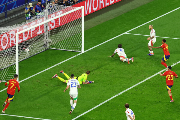 Ждать первого гола Ямаля на Евро пришлось недолго: он помог своей команде выйти в финал, забив в полуфинальной встрече французам (2:1). Таким образом, игрок стал самым молодым в истории чемпионатов Европы автором забитого мяча — на тот момент ему было 16 лет 362 дня. Наконец, в возрасте 17 лет 1 дня он стал самым молодым участником финала Евро. И, соответственно, самым молодым чемпионом Европы.