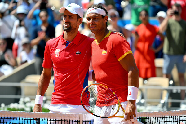 Перенесемся на корт Филиппа Шатрье, где Новак Джокович играет с Рафаэлем Надалем. Пока серб громит легендарного соперника — 6:1 после первого сета!