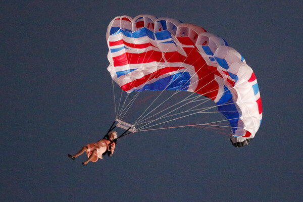 Лондон-2012: гигантский младенец и Елизавета II на парашюте