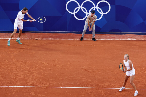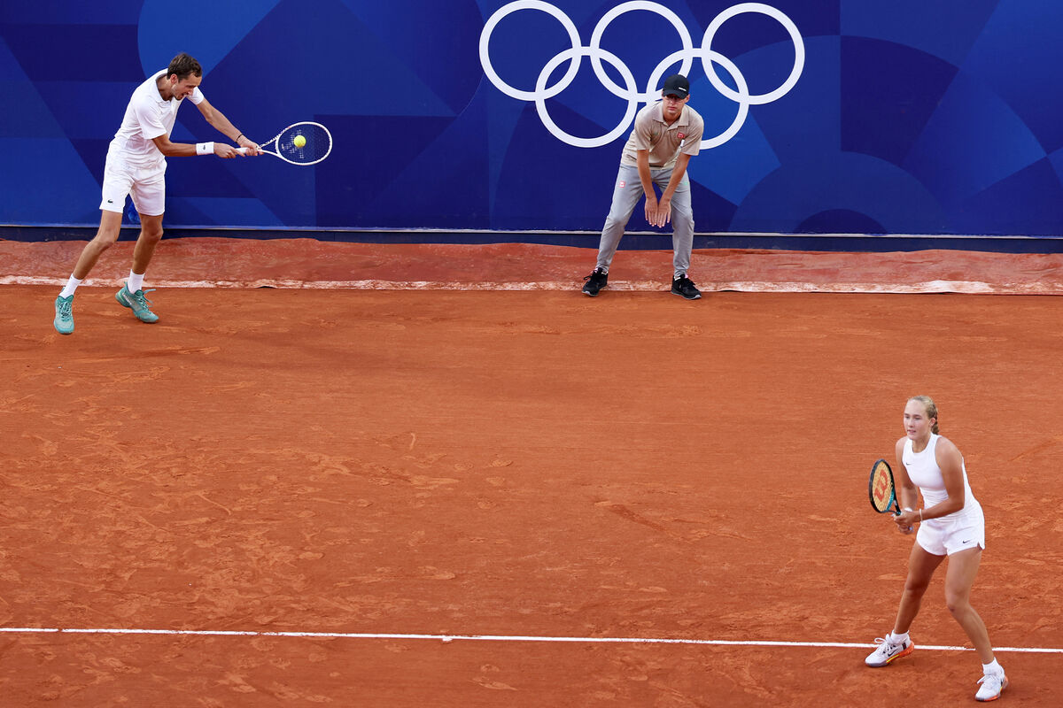 Все, игра окончена! 3:6, 2:6 — Даниил Медведев и Мирра Андреева завершают свое выступление в миксте на летних Олимпийских играх 2024 года в Париже.