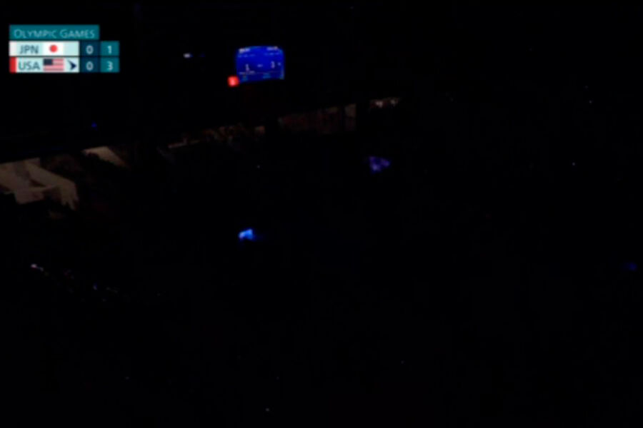 Инцидент произошел в начале матча при счете 3:1 в пользу американцев в первом сете. Свет вернулся менее чем через две минуты после отключения.