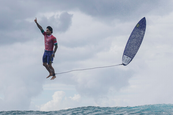 Возможно, фотографию бразильского серфера Габриэля Медины позже признают лучшим кадром с Олимпиады — при том, что соревнования серфингистов проходят на Таити, более чем в 15 тысячах километров от олимпийской столицы. Однако фотографам удалось запечатлеть действительно выдающийся момент.