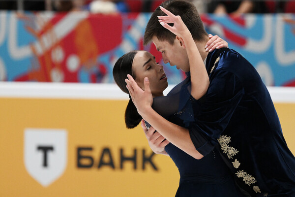 Следующими выступают Хабибуллина и Княжук! Они катаются под эпичный, боевой инструментал.