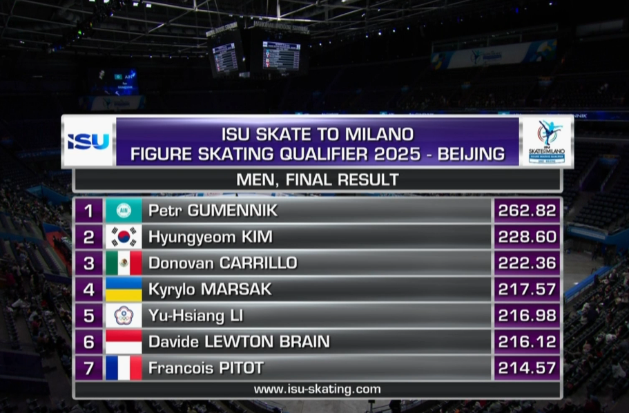 На Олимпиаду в Милане отобрались также Ким Хен Гем (Южная Корея), Донован Каррильо (Мексика), Кирилл Марсак (Украина) и Ли Юйсян (Китайский Тайбэй).