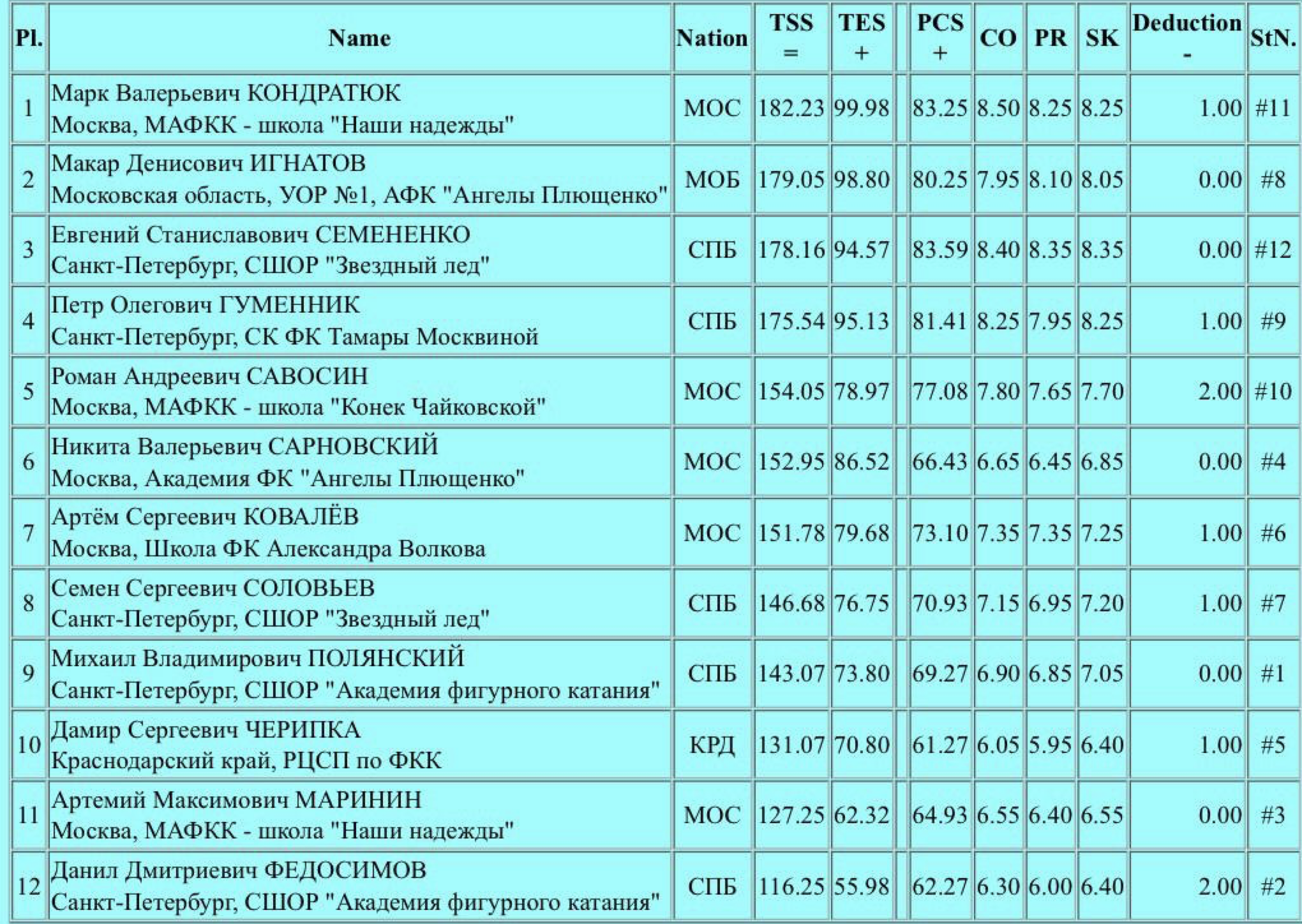 Оценка Маринина за произвольную программу — 127,25, общая сумма — 195,07. «Спасибо судьям!» — говорит его тренер Светлана Соколовская. «Спасибо», — вторит ей фигурист.