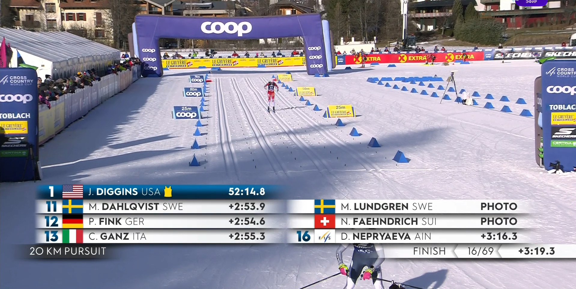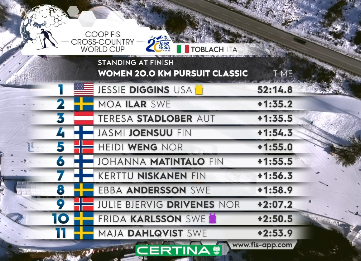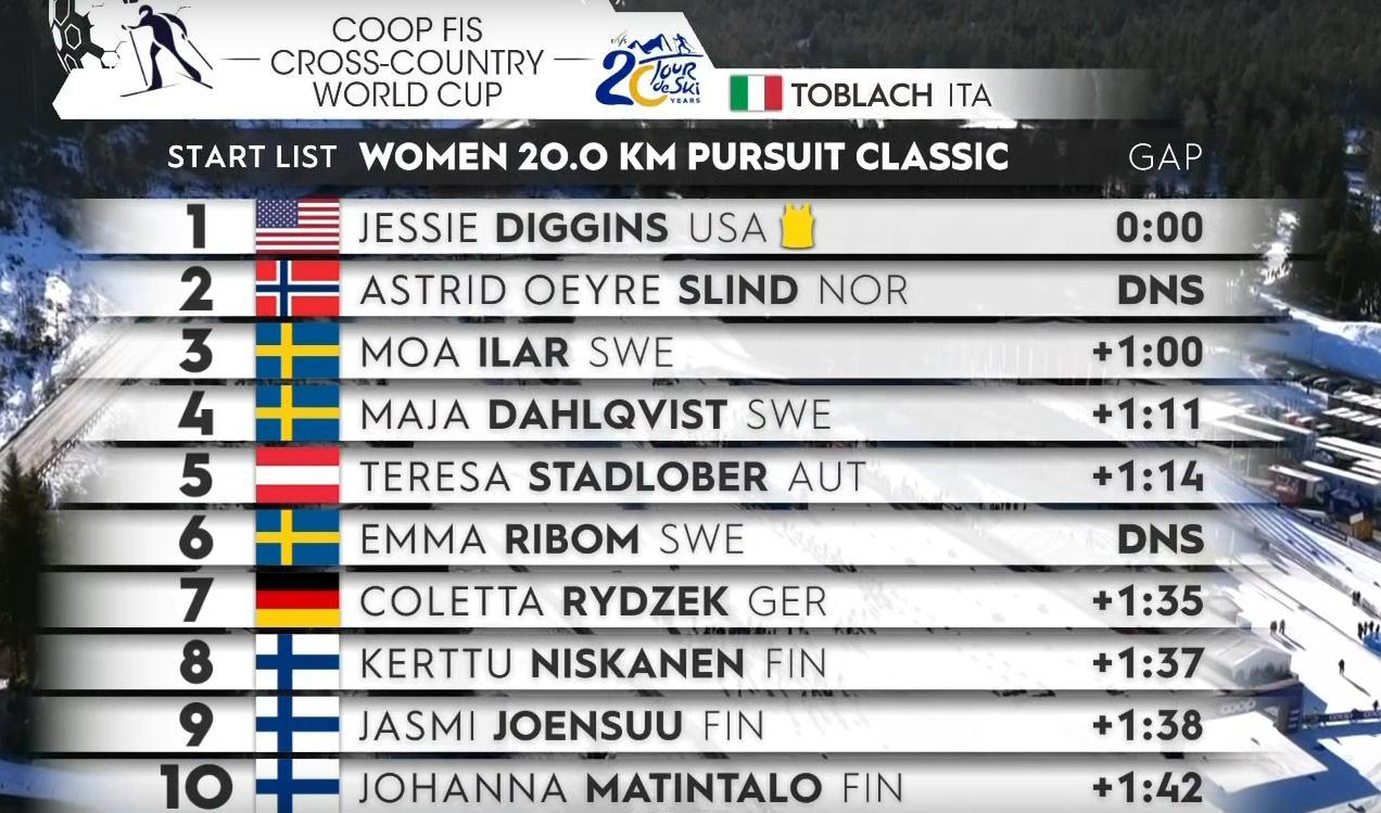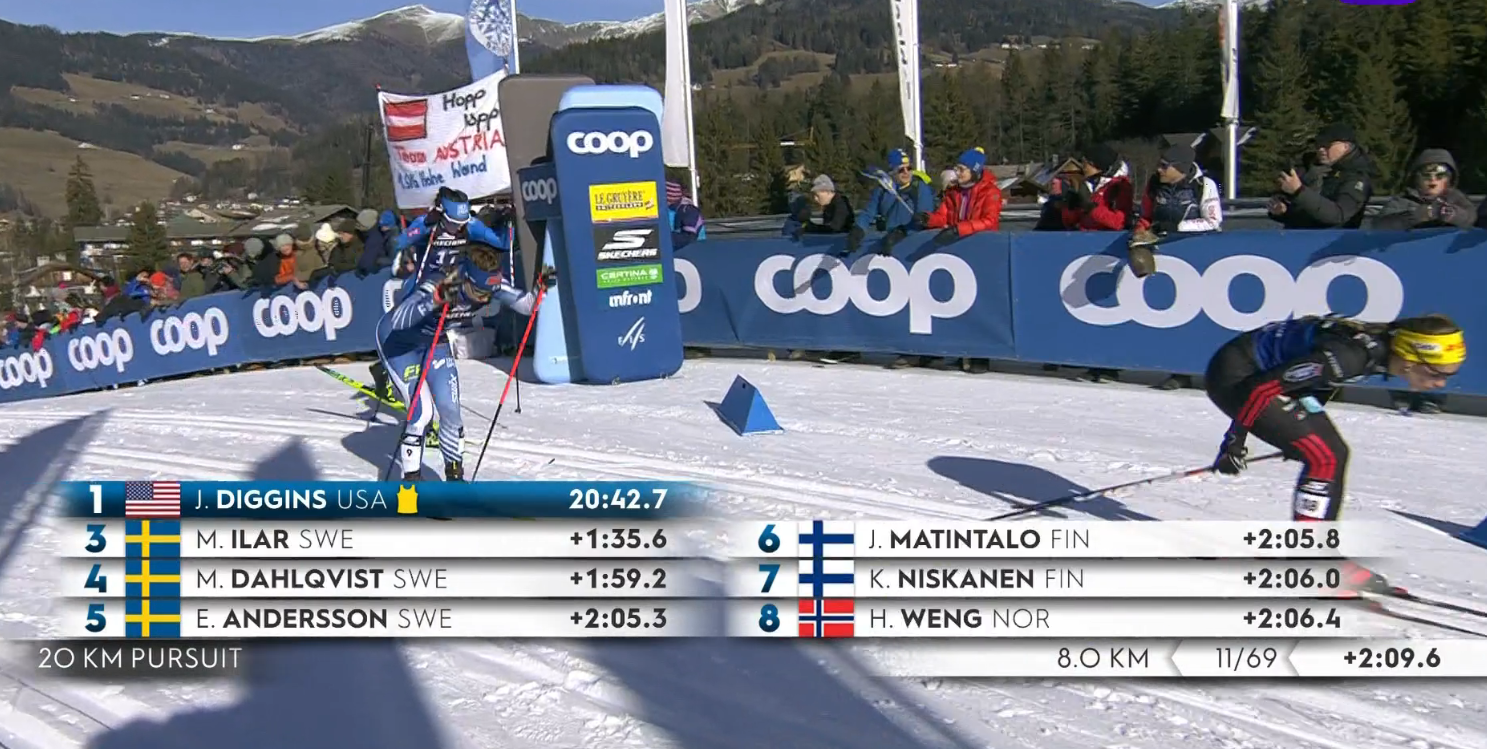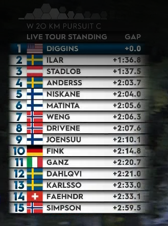 Джессика Диггинс — чемпионка сегодняшней гонки! Как, возможно, и всего «Тур де Ски» — догнать ее в общем зачете будет невероятно тяжело!