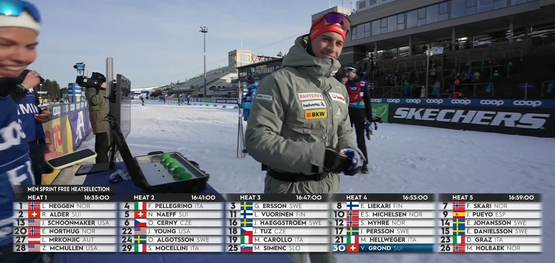 А тем временем стартует квалификация у мужчин! Латвийский лыжник Раймо Вигантс отправился в гонку!