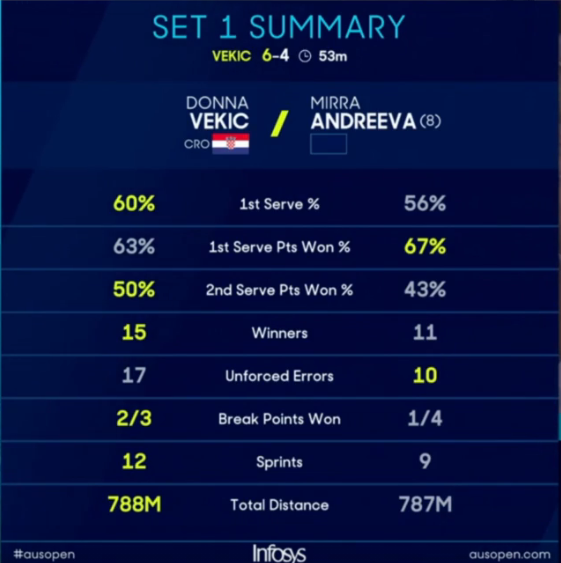 0:40, поплыла куда-то Векич, тройной брейк-пойнт в самом начале сета у россиянки!