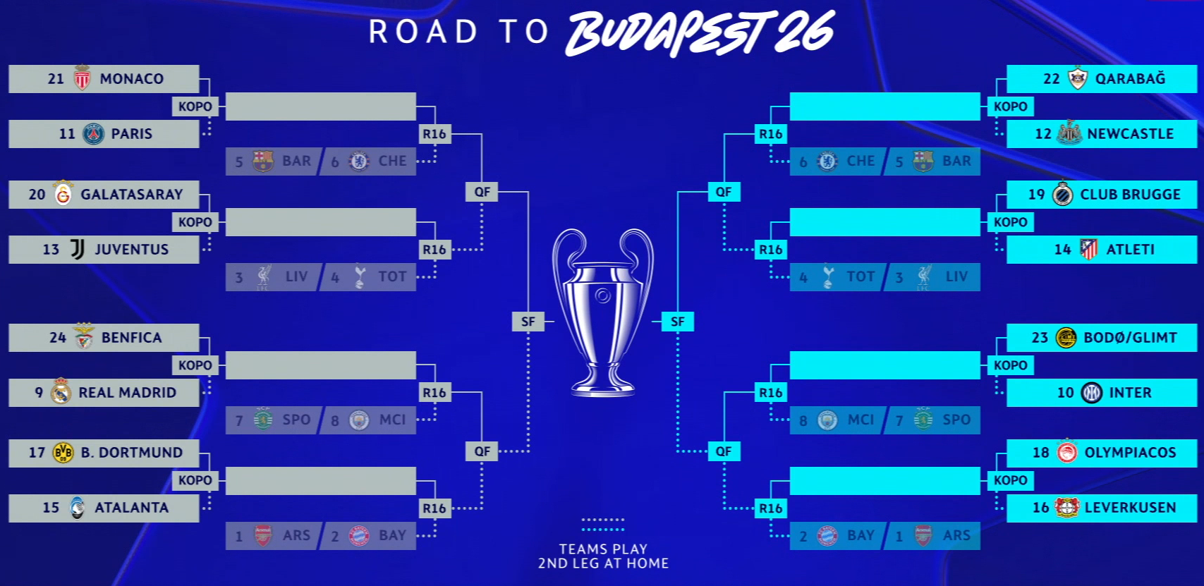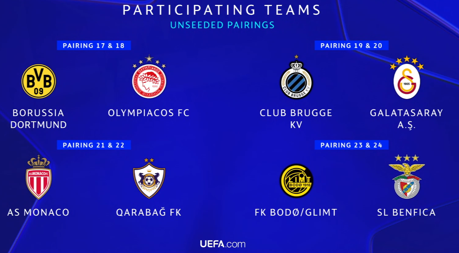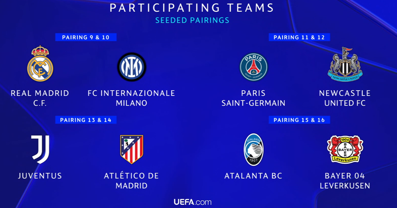 На ваших экранах сеянные команды, занявшие места с 9-го по 16-е на общем этапе Лиги чемпионов.