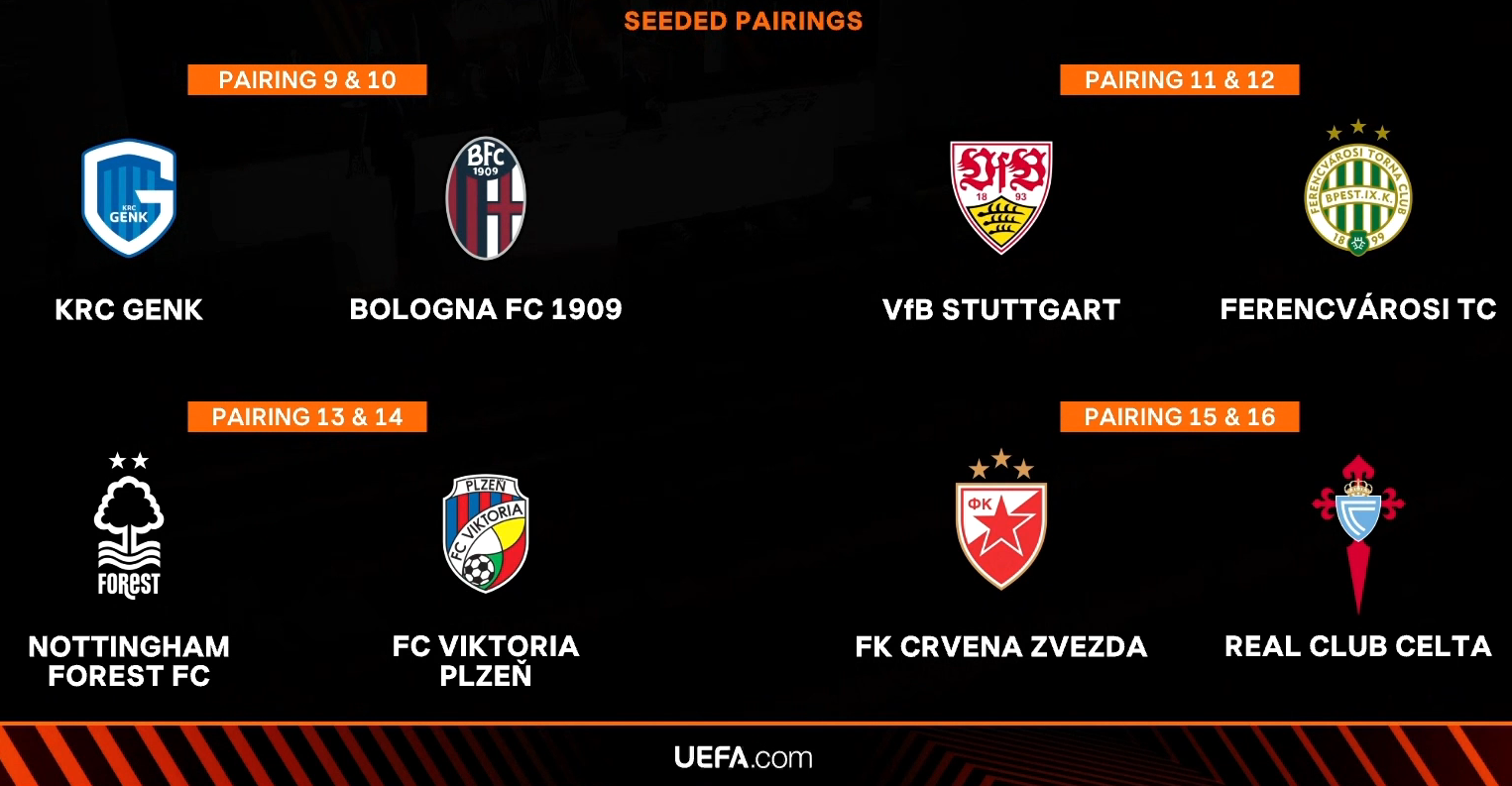 На ваших экранах сеянные команды — они заняли места с 9-го по 16-е в общем этапе Лиги Европы.