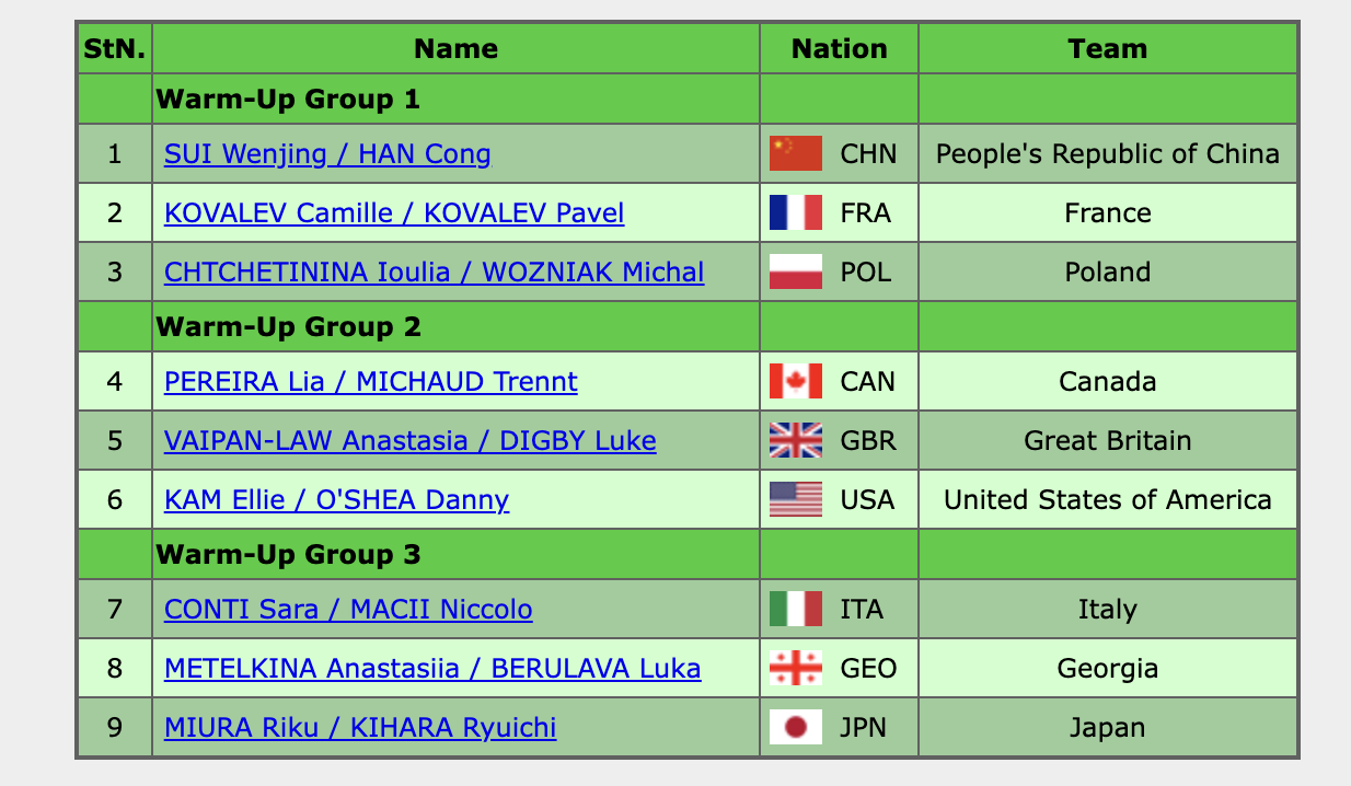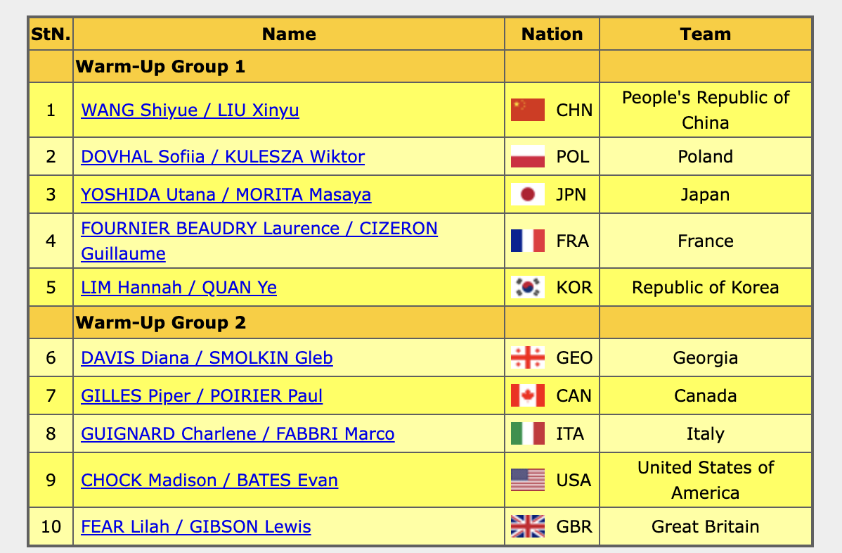 Открывают прокаты Ван Шиюэ и Лю Синьюй из сборной Китая!