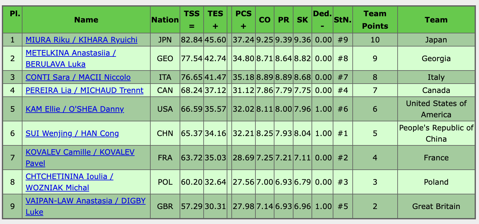 Оценка японских фигуристов Миуры и Кихары — 82,84 балла!