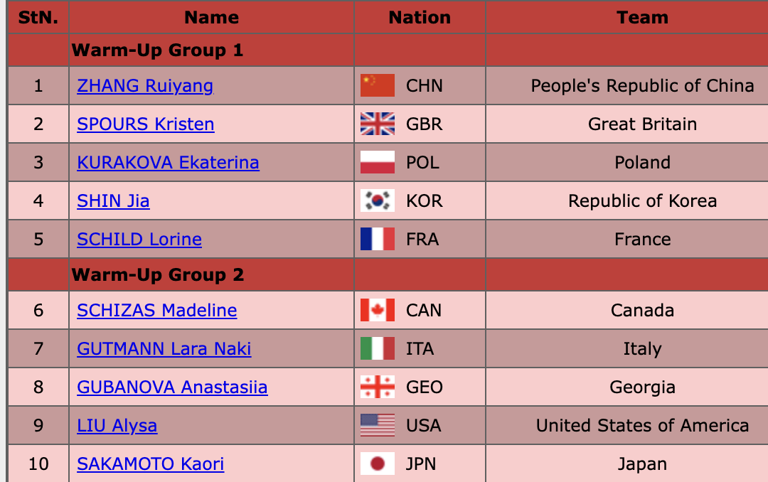 На разминку вышли женщины-одиночницы! Порядок выступления в короткой программе: