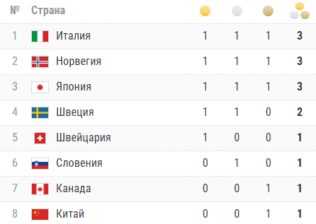 За три вида до конца соревновательной программы таблица командного турнира выглядит так: