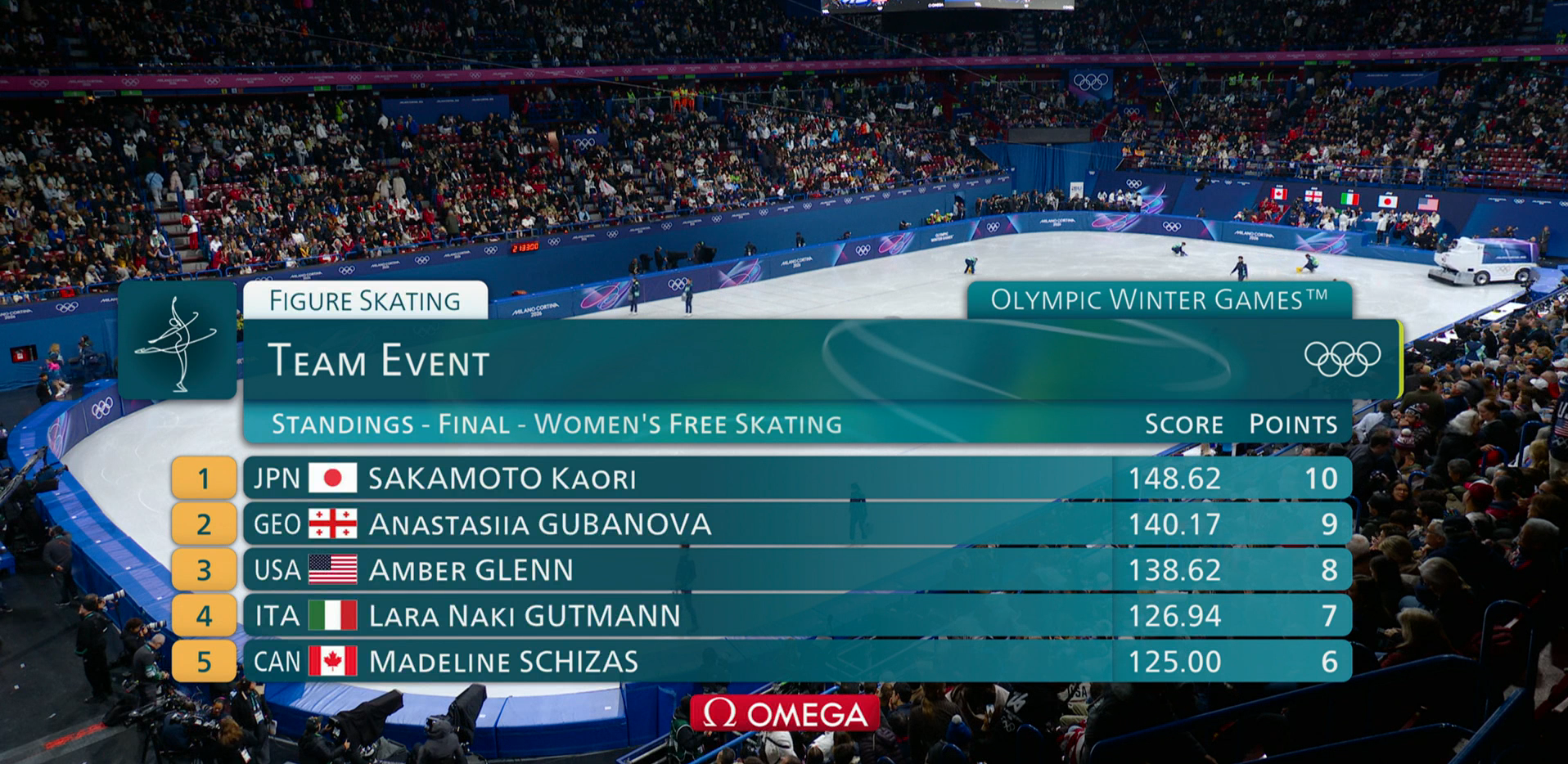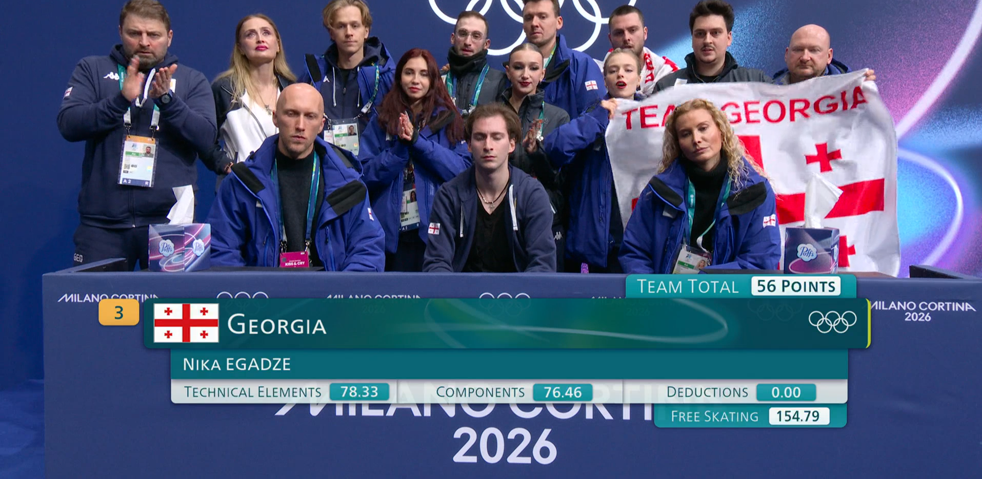 Более 140 баллов набирает за свою произвольную программу под музыку из кинофильма «Привидение» Анастасия Губанова и позволяет оставаться сборной Грузии в борьбе за медали!