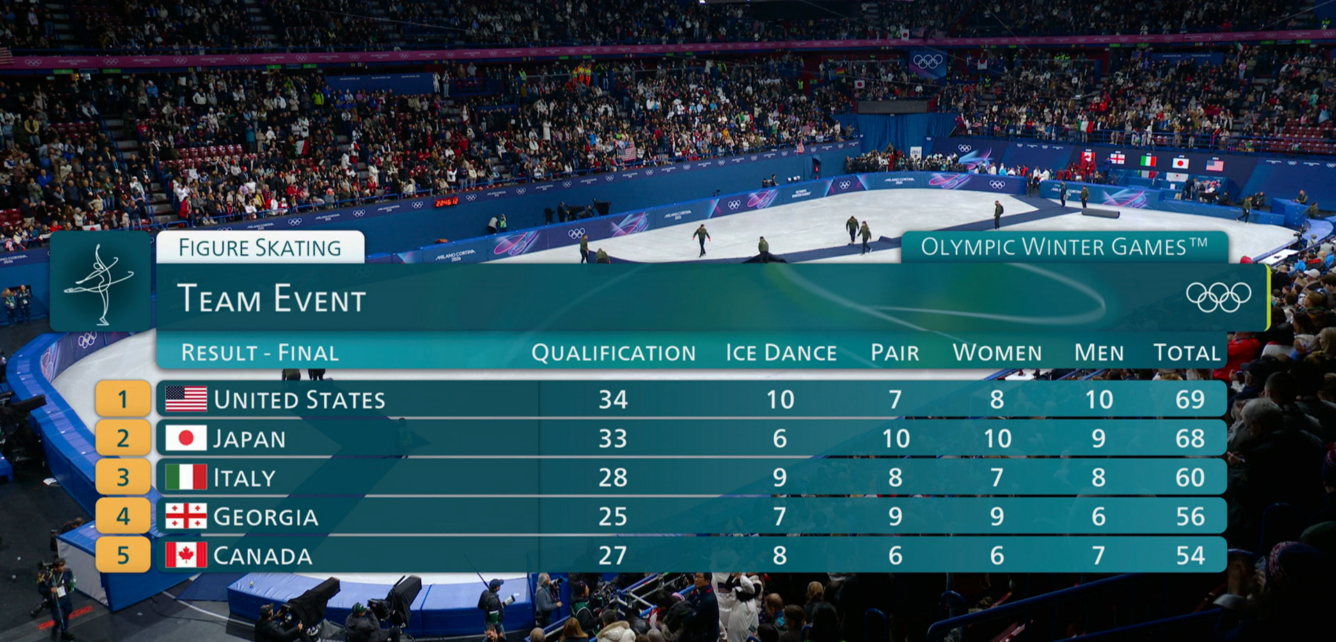 Пары откатали свои произвольные программы, ее результаты на ваших экранах.
