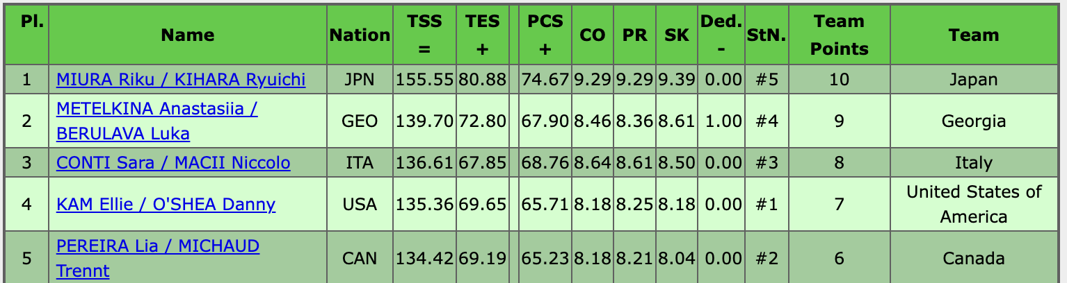 Итоги выступления спортивных пар (надо кликнуть на картинку):