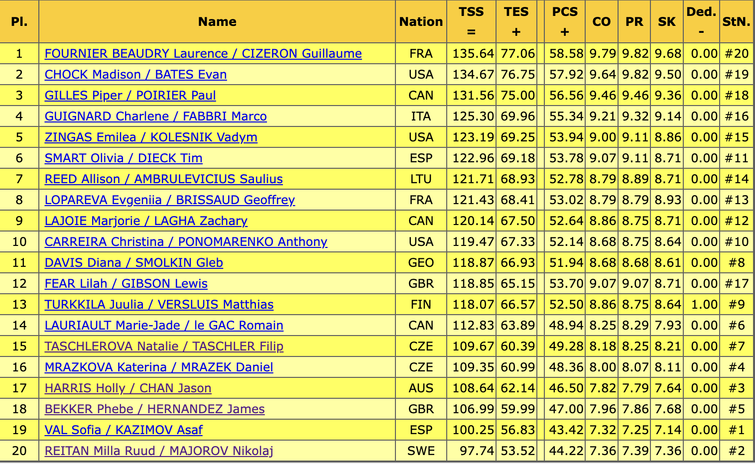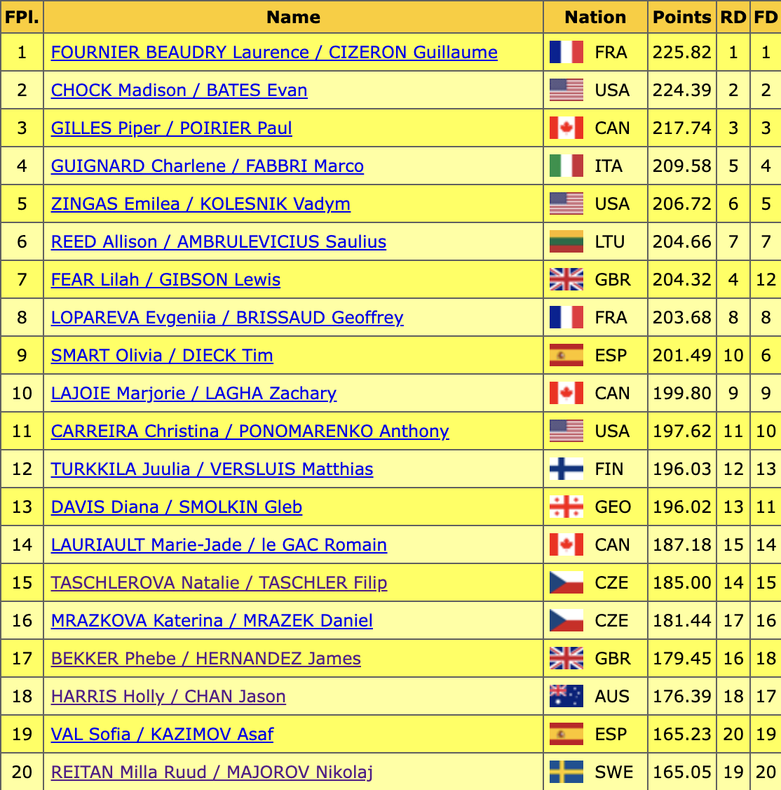 Оценка Лажуа и Лаги за произвольный танец — 120,14 балла, по сумме — 199,80.