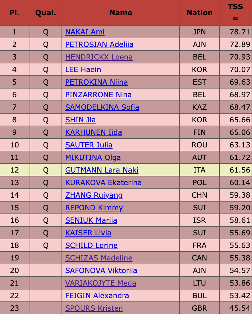 Итоги короткой программы женщин: