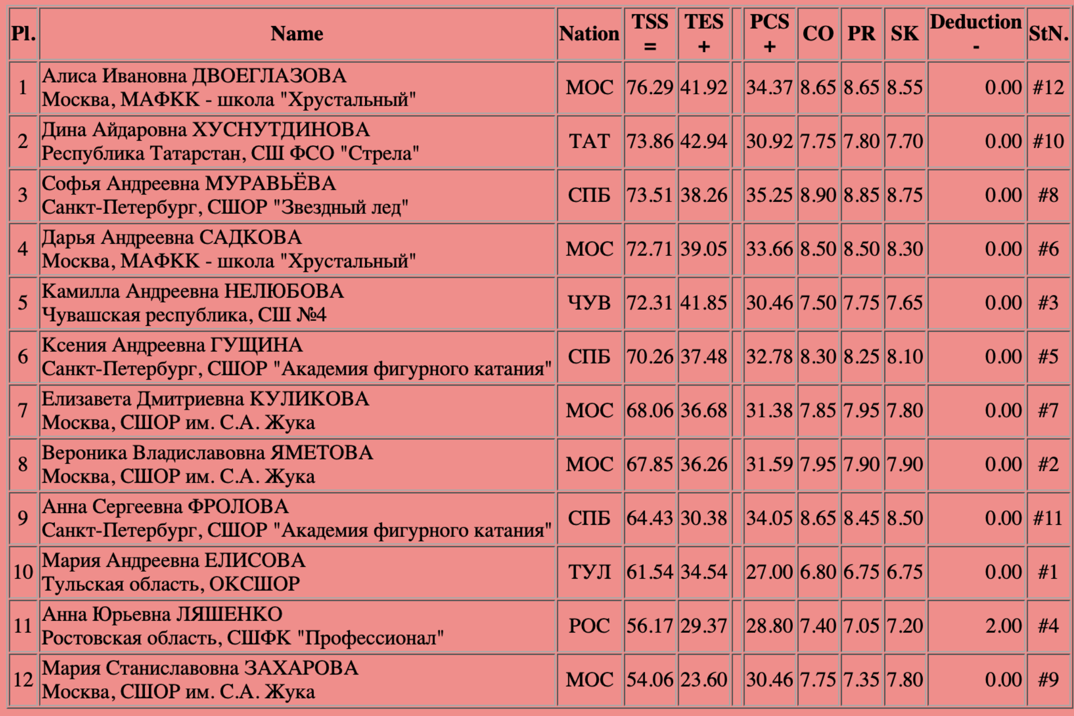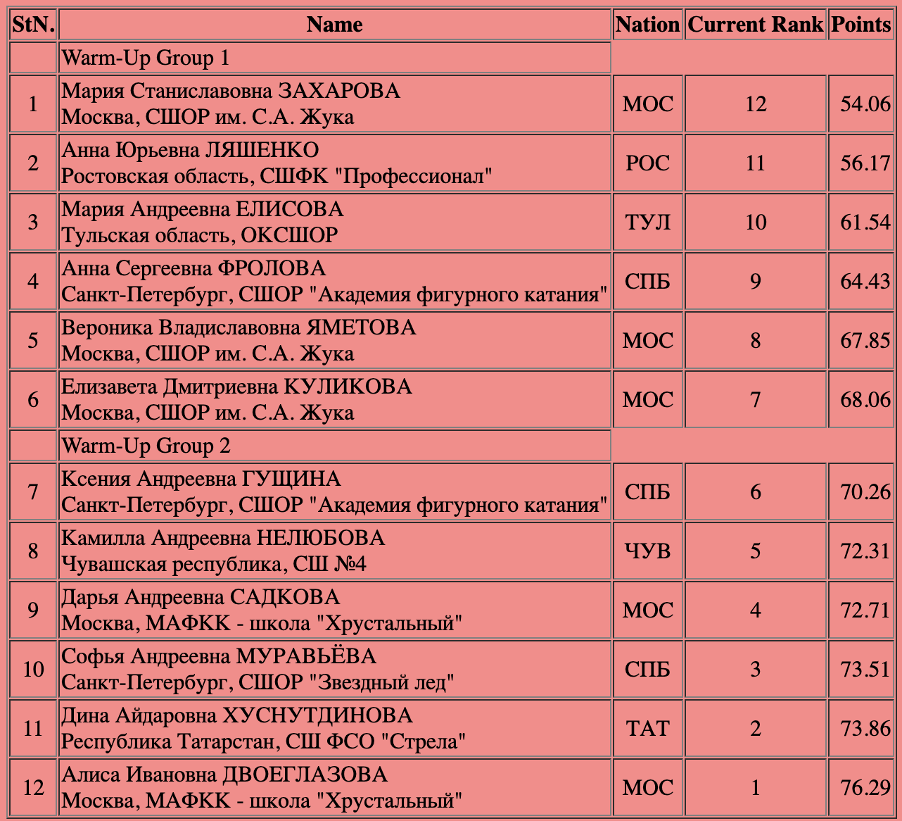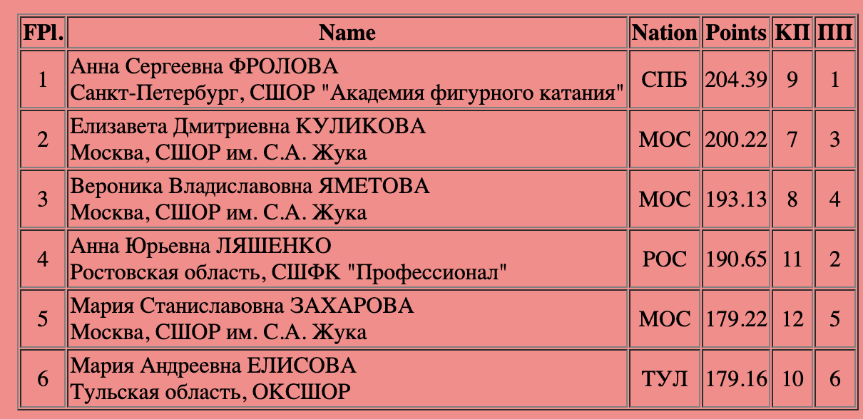 Напомним итоги короткой программы: