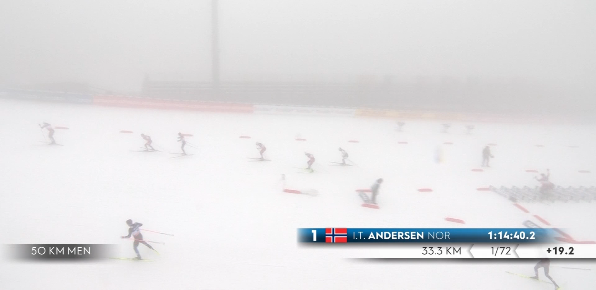 Ивер Андерсен поменял лыжи на два круга раньше, и сейчас с большим отрывом двигается от группы преследователей!