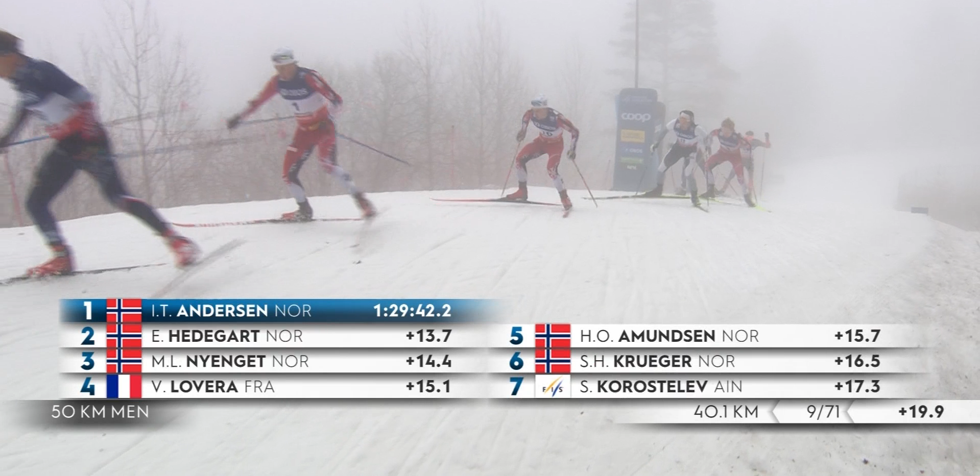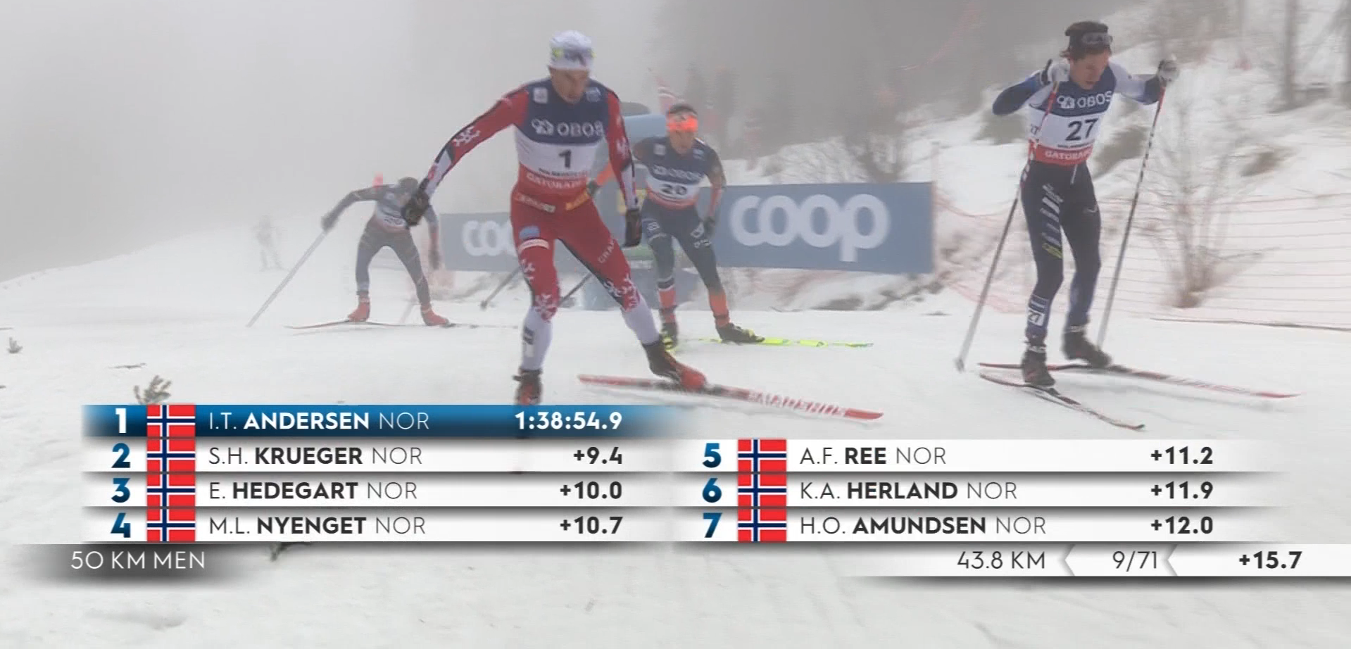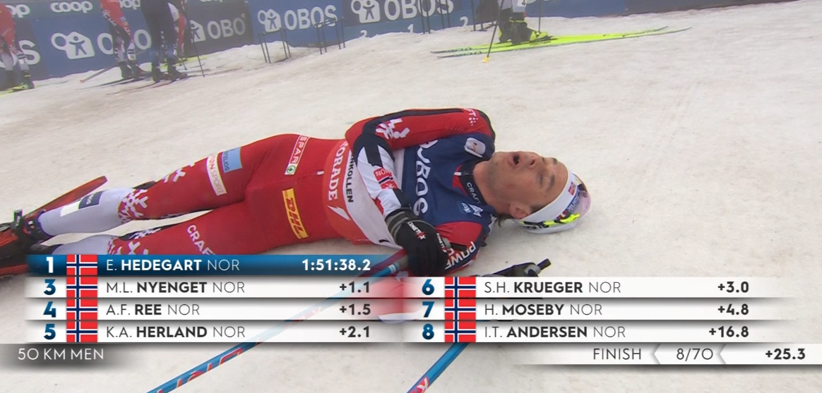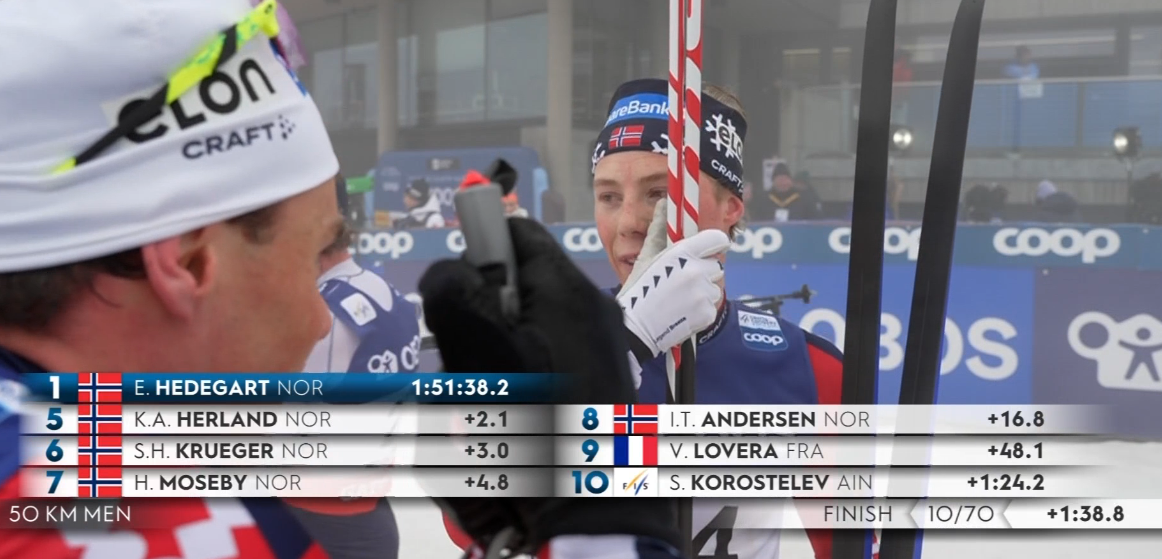 Эйнар Хедегарт сокращает отставание от Андерсена до 15 секунд!