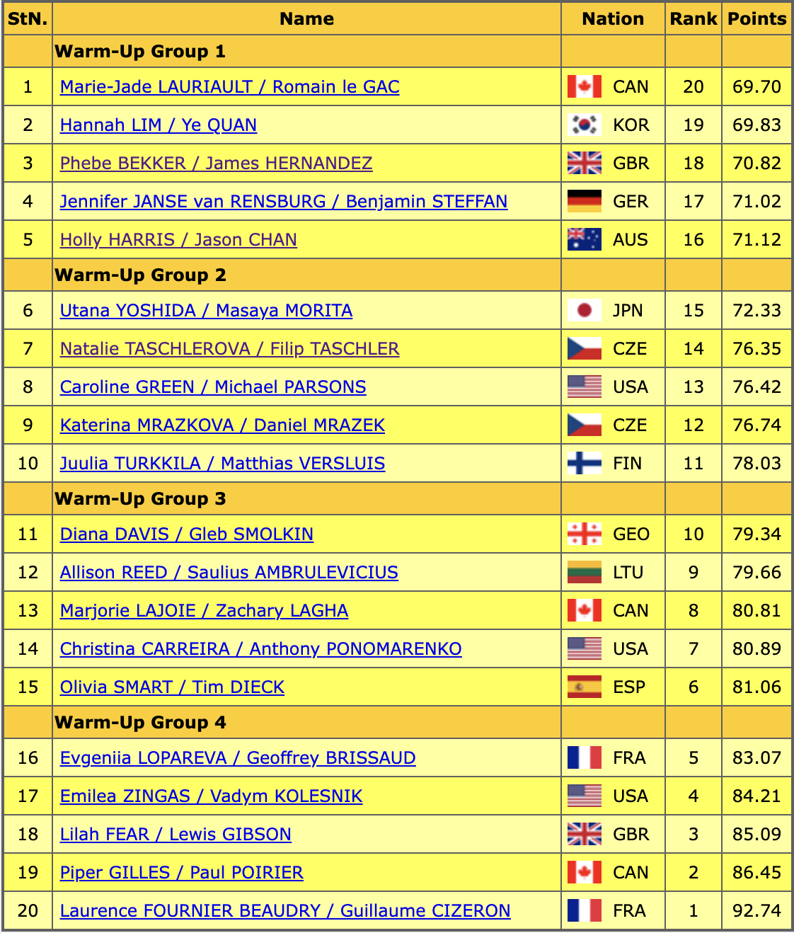 Результаты всех выступивших пар на данный момент: