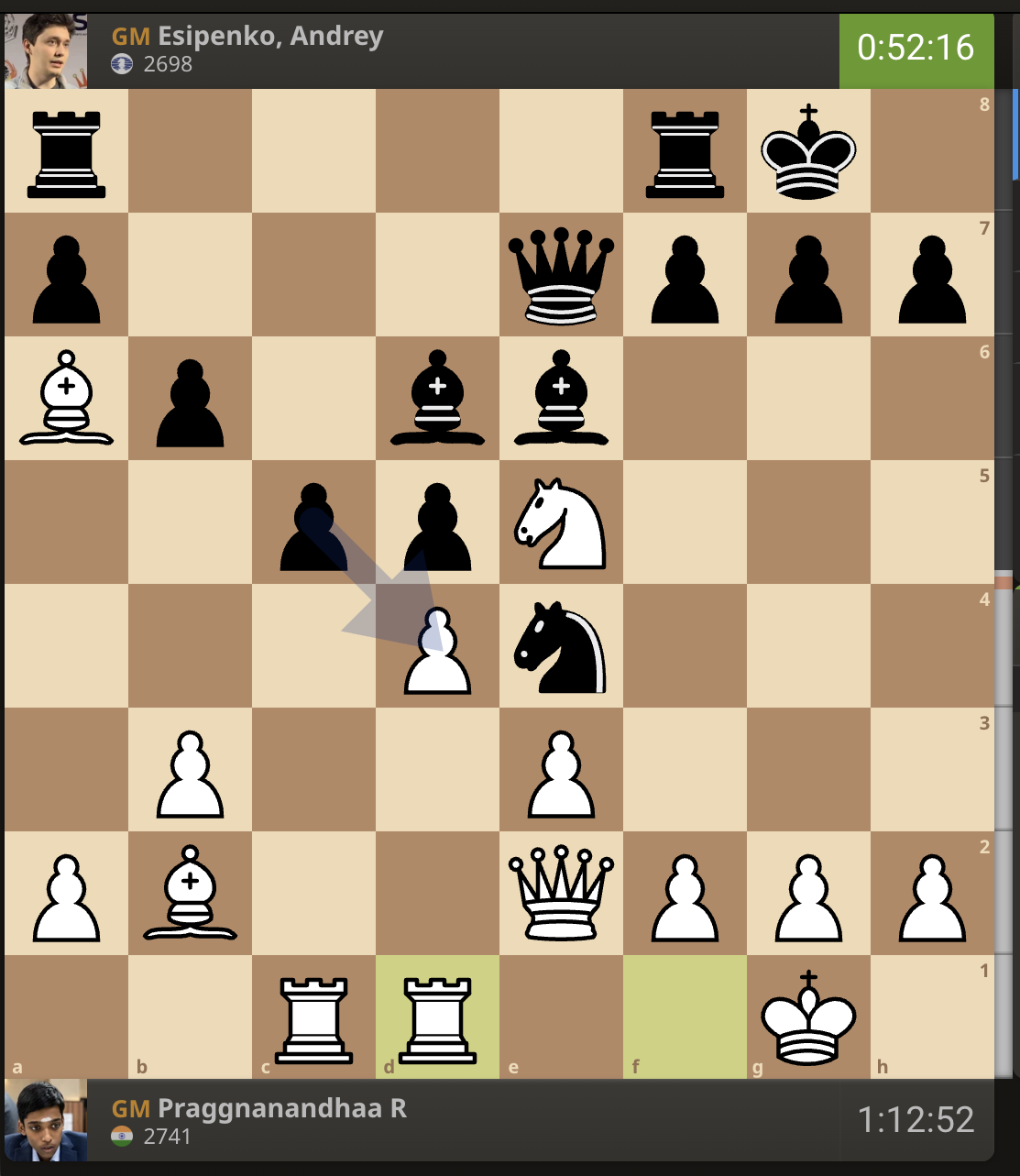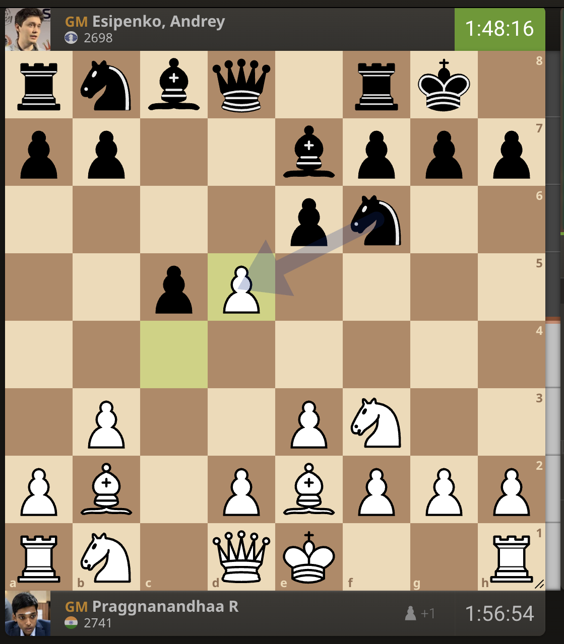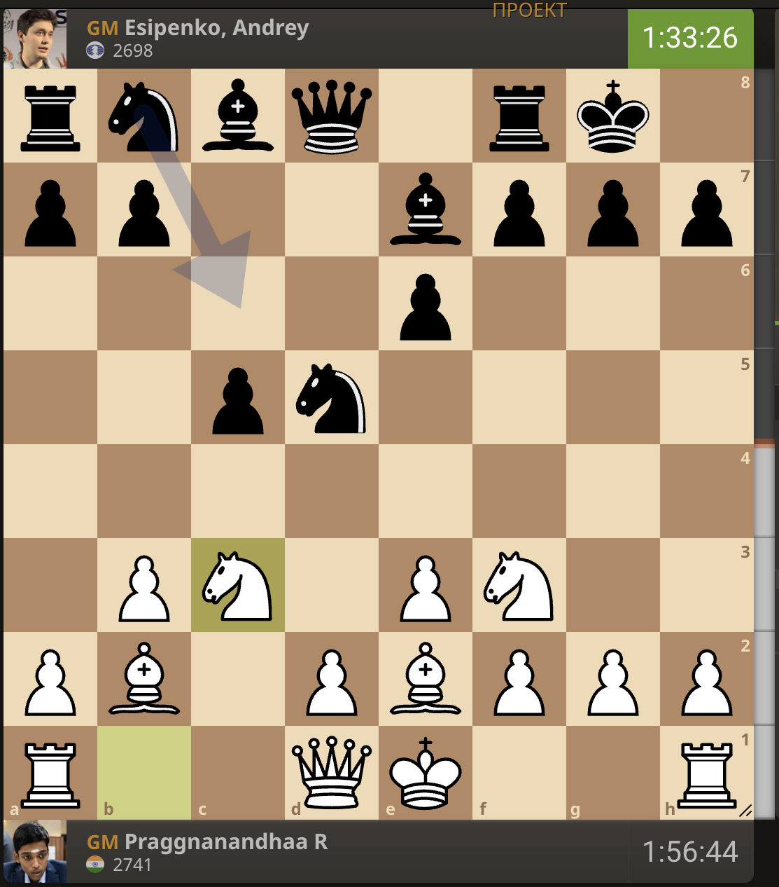 Сделал ход Есипенко, и тут же Рамешбабу снова заставил соперника задуматься.