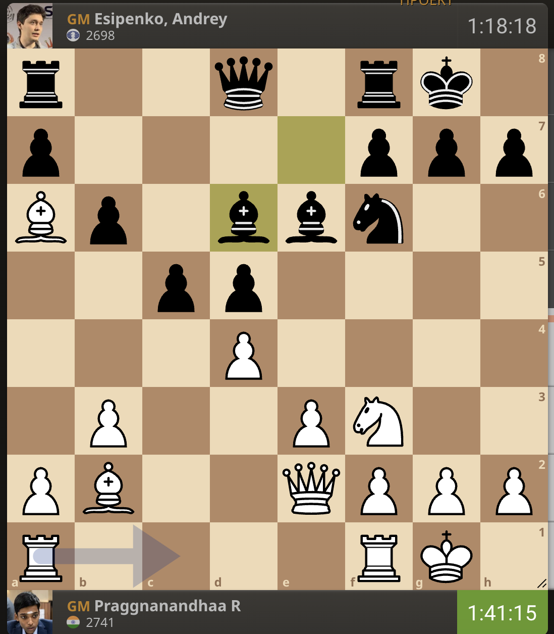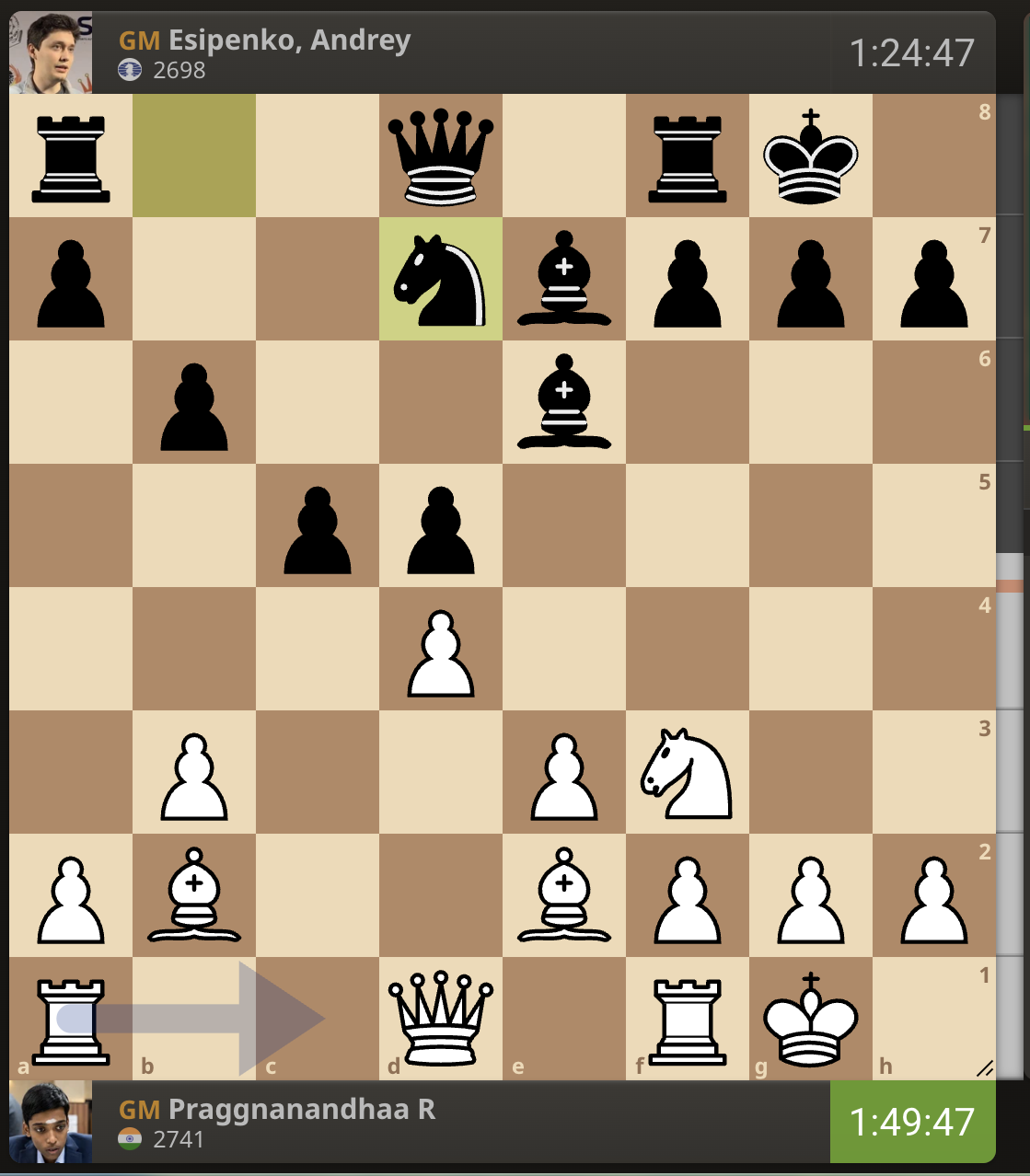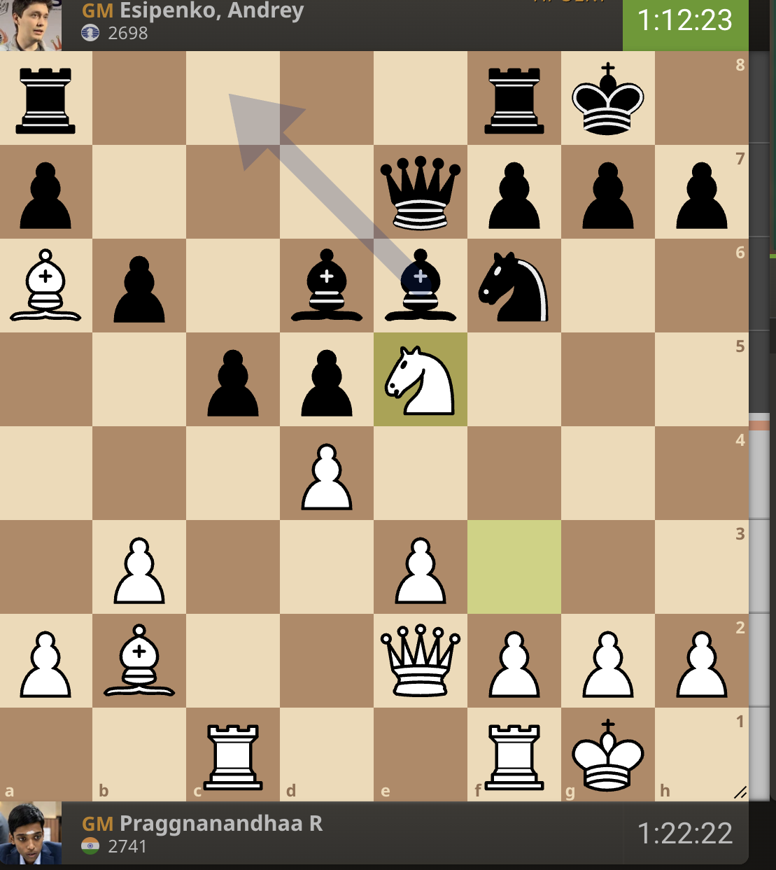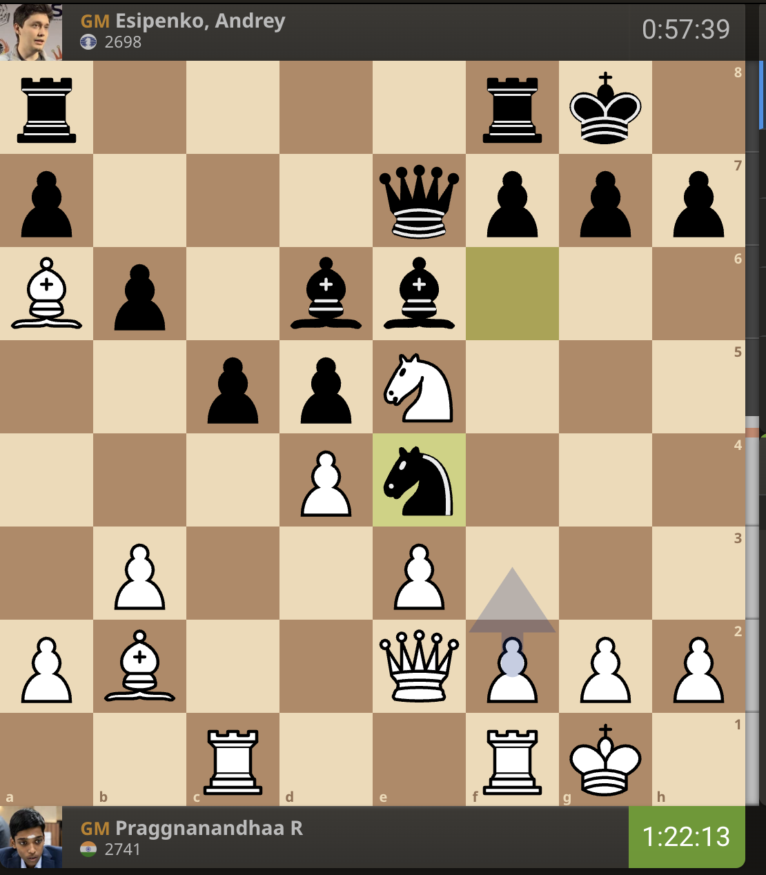 Добрый день, уважаемые читатели! Следим за матчем Андрея Есипенко и Рамешбабу Прагнанандхи на Турнире претендентов.