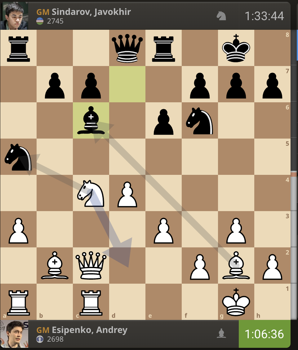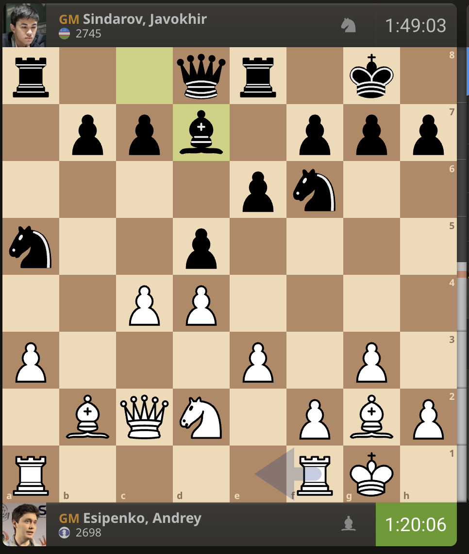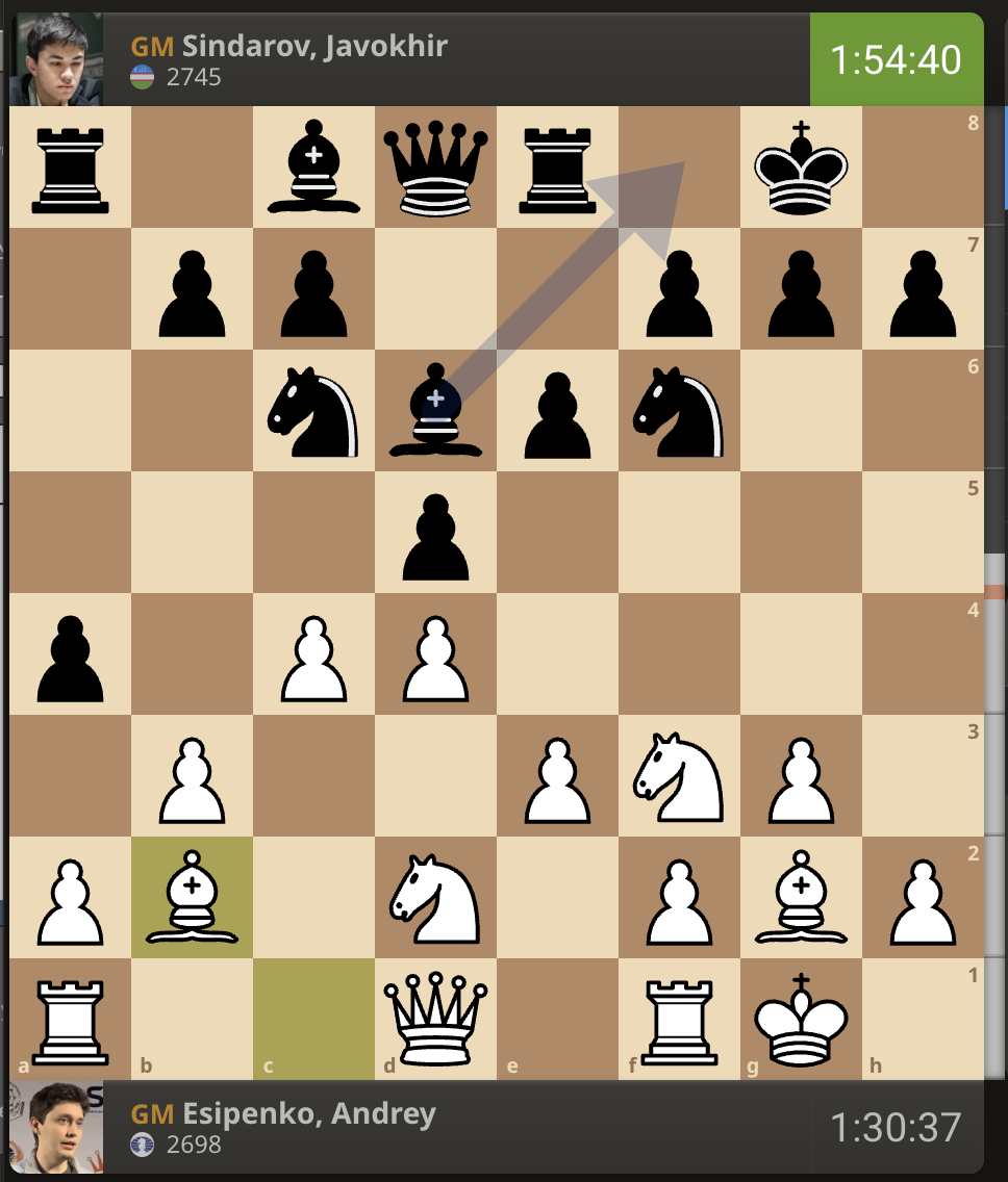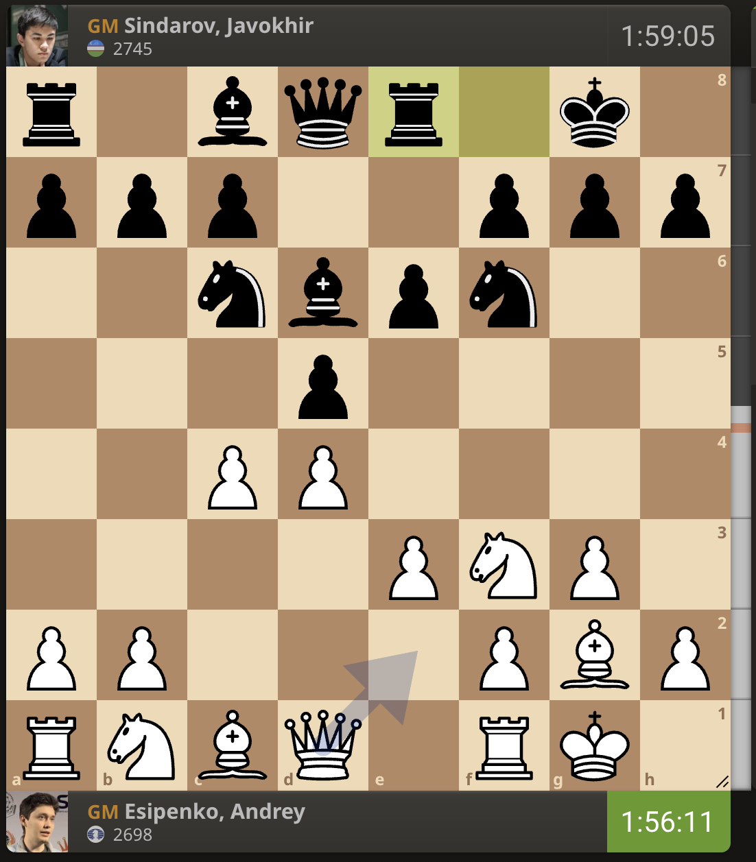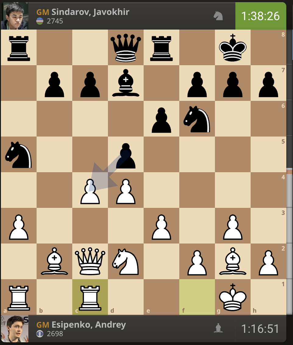 За прошедшие 15 минут расстановка на доске никак не изменилась. Есипенко все еще не сделал ход.