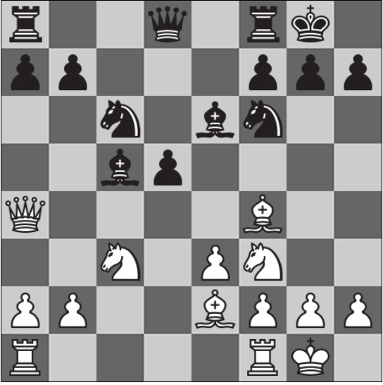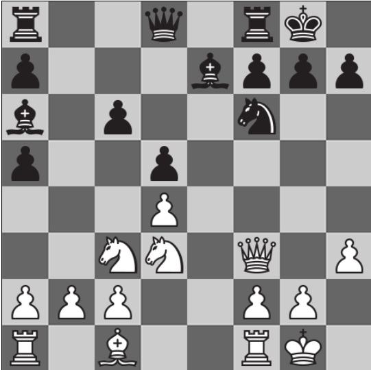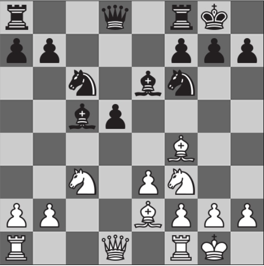 Активное начало партии Аниша Гири с Андреем Есипенко: 1.d4 d5 2.c4 e6 3.Nc3 Be7 4.cxd5 exd5 5.Bf4 Nf6 6.e3 0-0 7.Nf3 c5 8.dxc5 Bxc5 9.Be2 Nc6 10.0-0 Be6. Ферзевый гамбит.