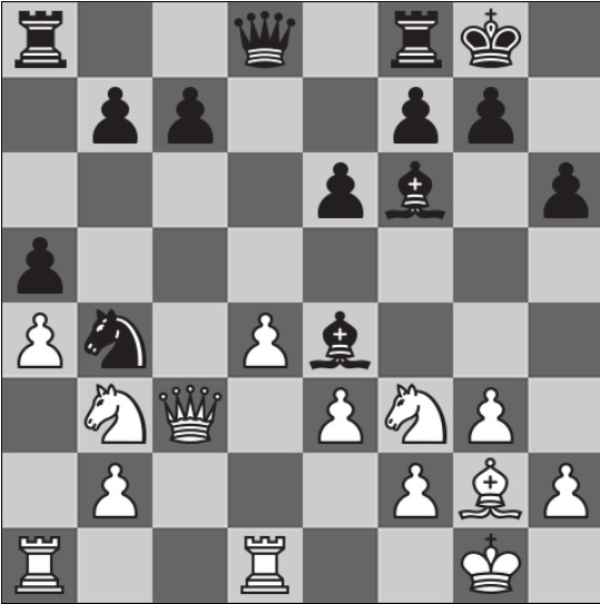 Есипенко тоже пошел ферзем вперед после нескольких ходов: h6 12.Rfd1 Qb6. Теперь задумался Гири, поскольку Есипенко может или ударить на b2, или пойти на b4, провоцируя размен.