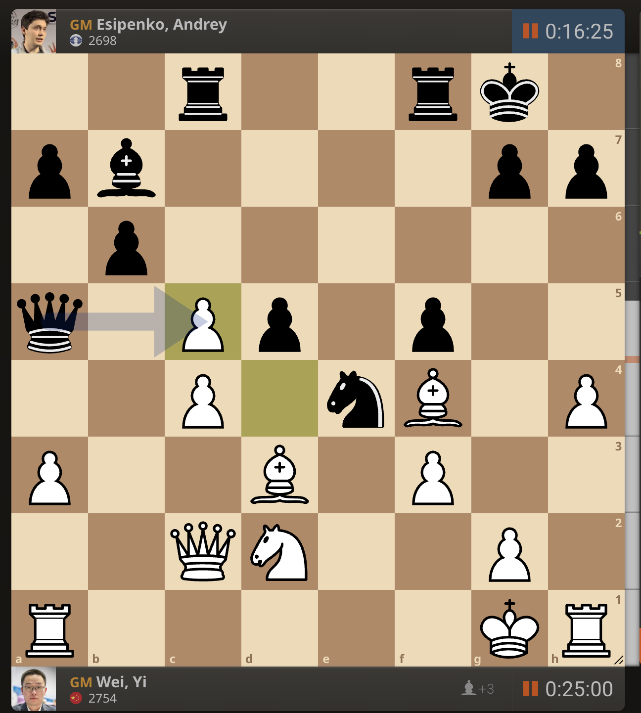 Вэй И в ответ забрал слона Есипенко пешкой.