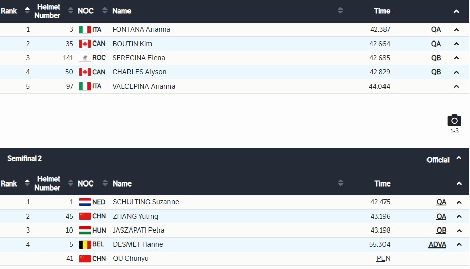 Только что юная российская представительница шорт-трека Елена Серегина сражалась в полуфинале на дистанции 500 м. Итальянка Арианна Фонтана уверенно выиграла забег, а наша спортсменка лишь на фотофинише уступила в борьбе за второе место канадце Ким Бутен. Та идет в финал А, Серегина выступит в финале Б за 5-8 места.
