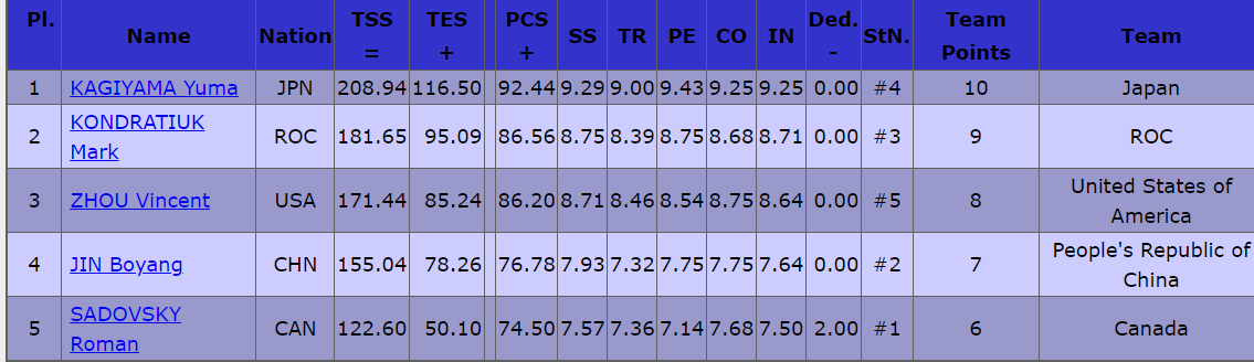 Это было волнительно, это было нервно, но Марк Кондратюк в произвольном прокате уступил только японцу Юме Кагияме, который выдал сумасшедший прокат, а его баллы — это третий результат в истории. Американец Винсент Чжоу оказался третьим, что приводит к тому, что отрыв России от США в командном турнире увеличивается еще на три балла. Теперь у российской команды 45 очков, у американцев 42. Япония набирает 39 баллов.