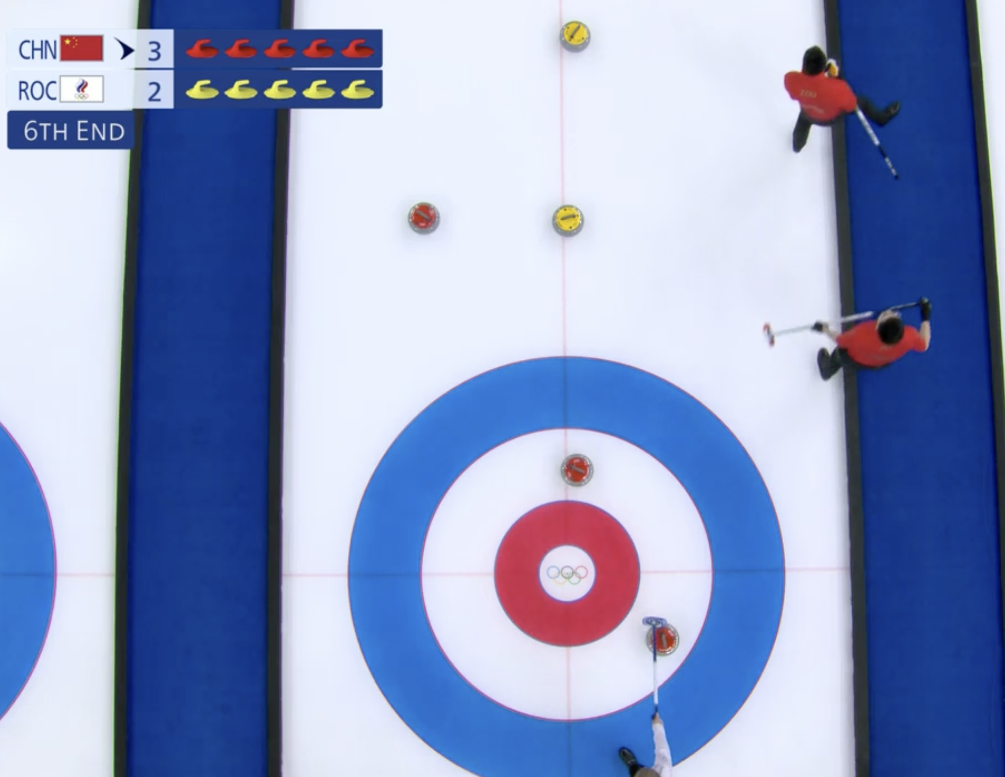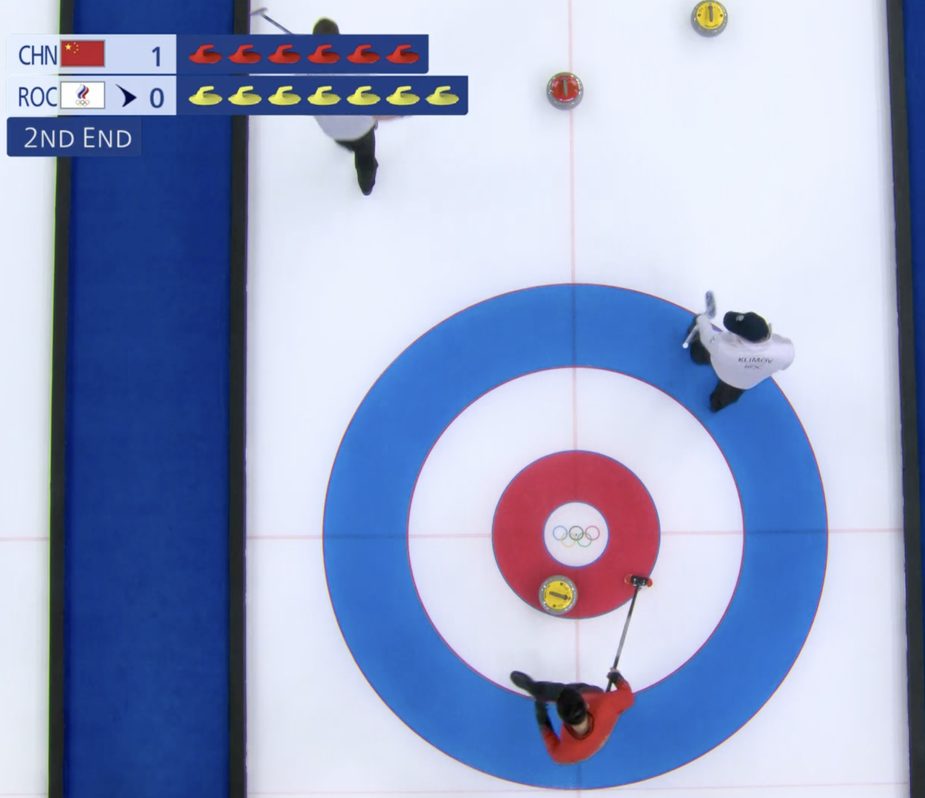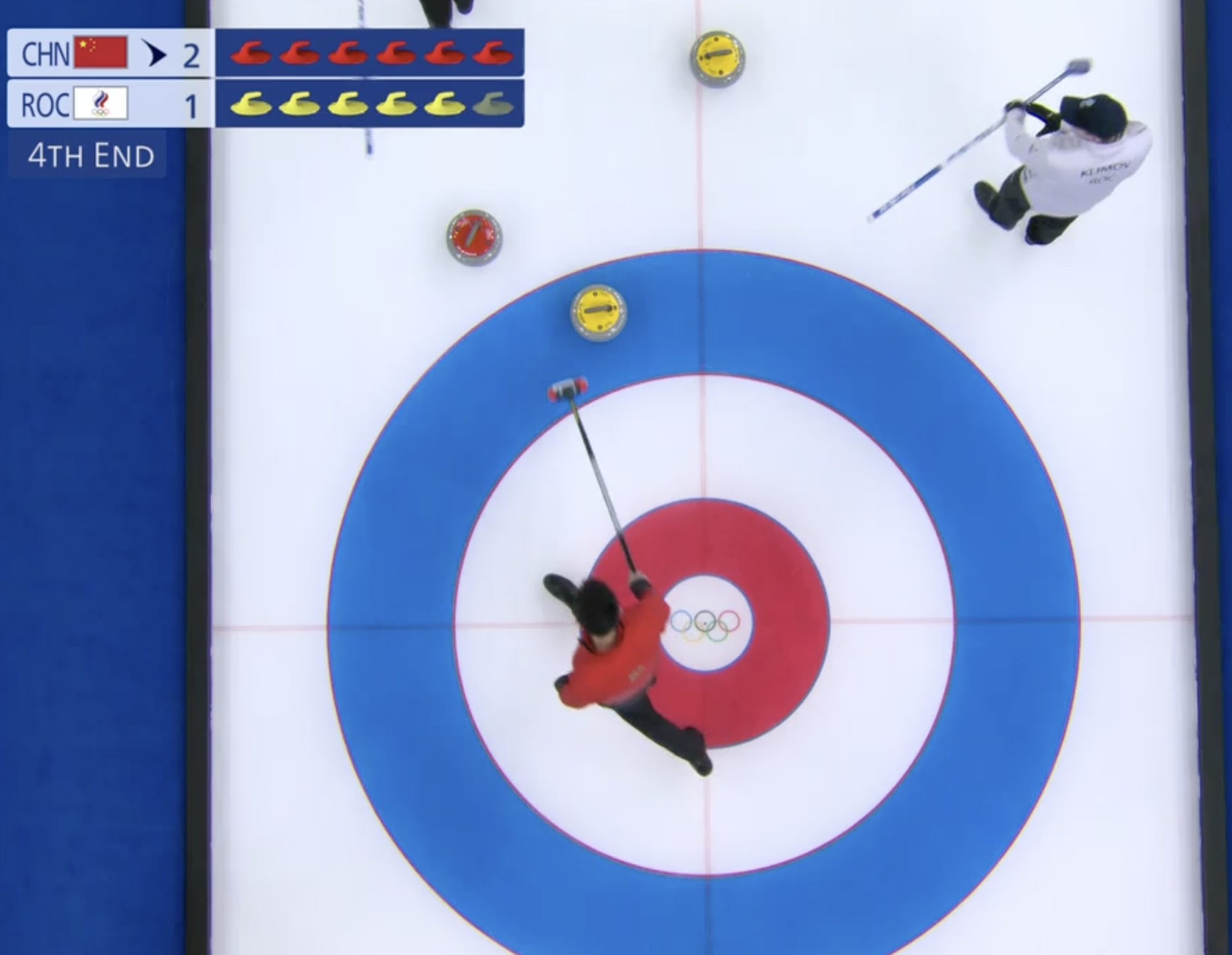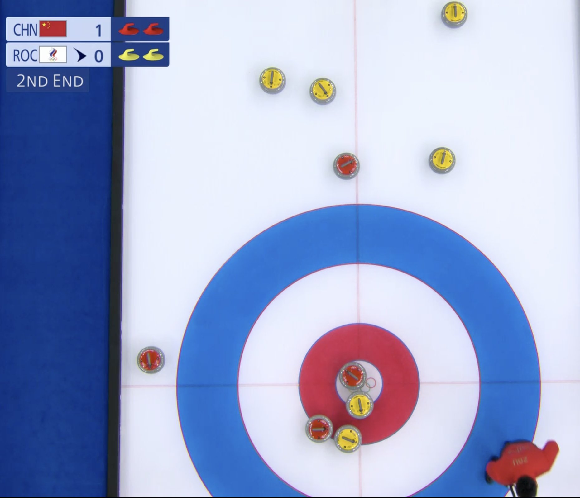 Выигрывают китайцы и второй энд с преимуществом в один камень. Но ничего страшного, отыграть разрыв в счете можно в следующем энде.