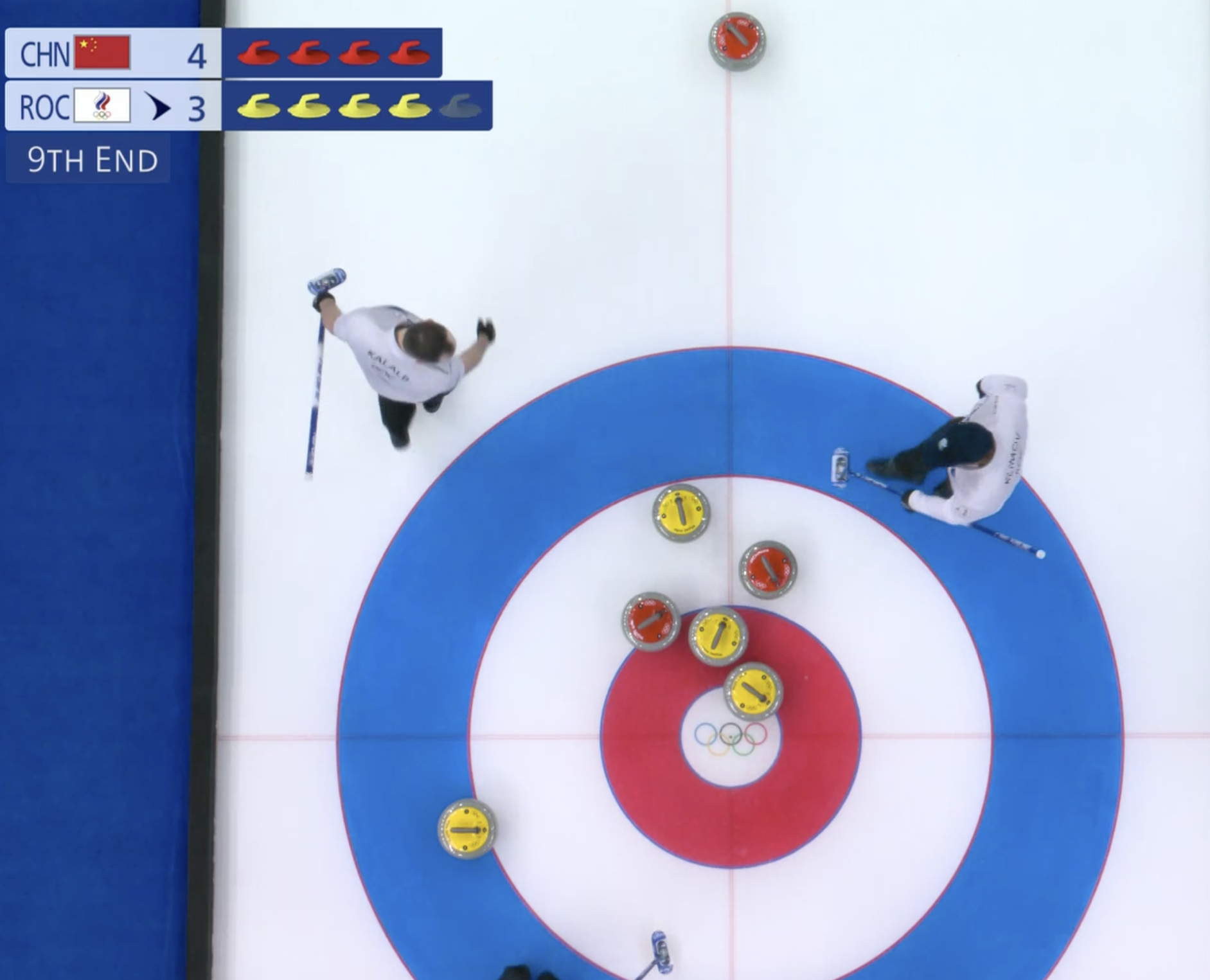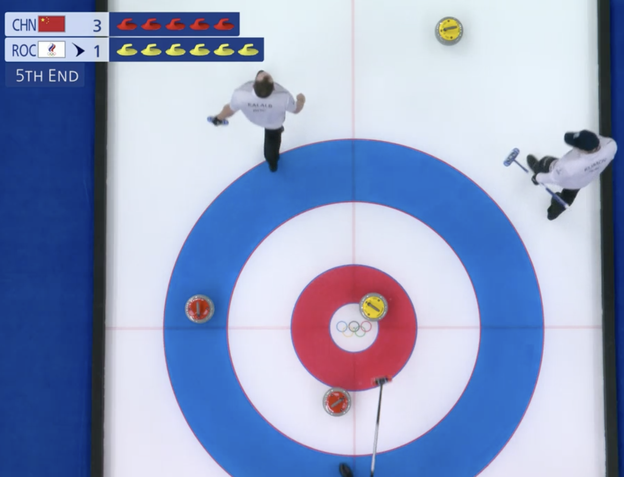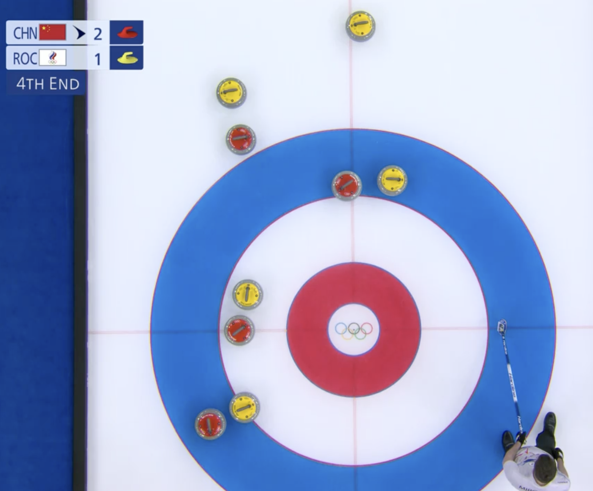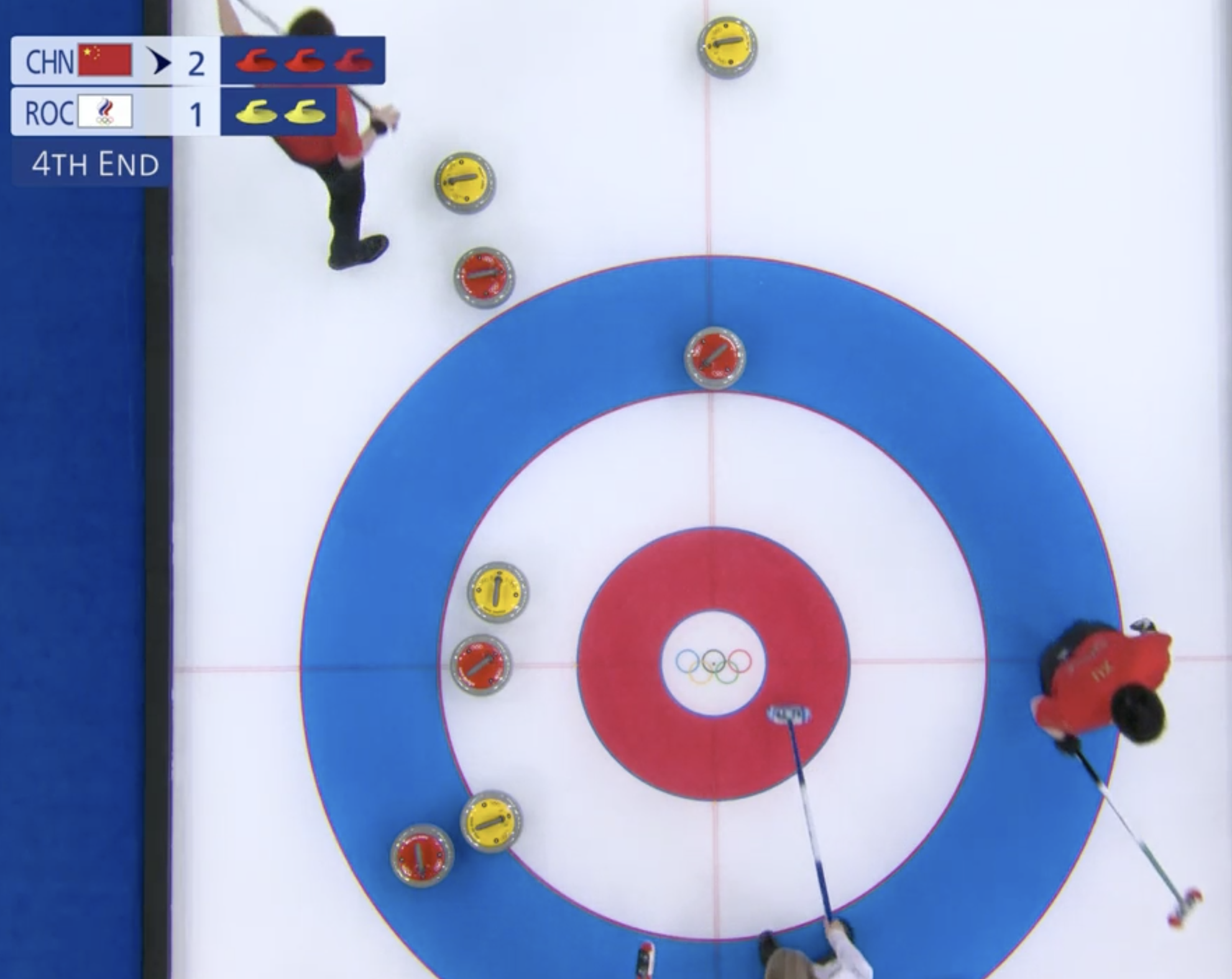 Выигрывают китайцы и второй энд с преимуществом в один камень. Но ничего страшного, отыграть разрыв в счете можно в следующем энде.