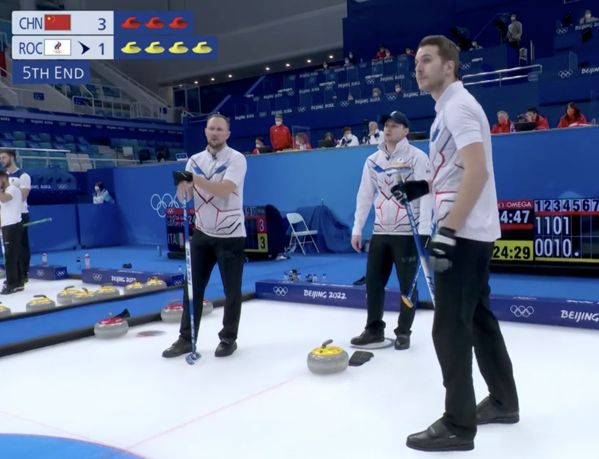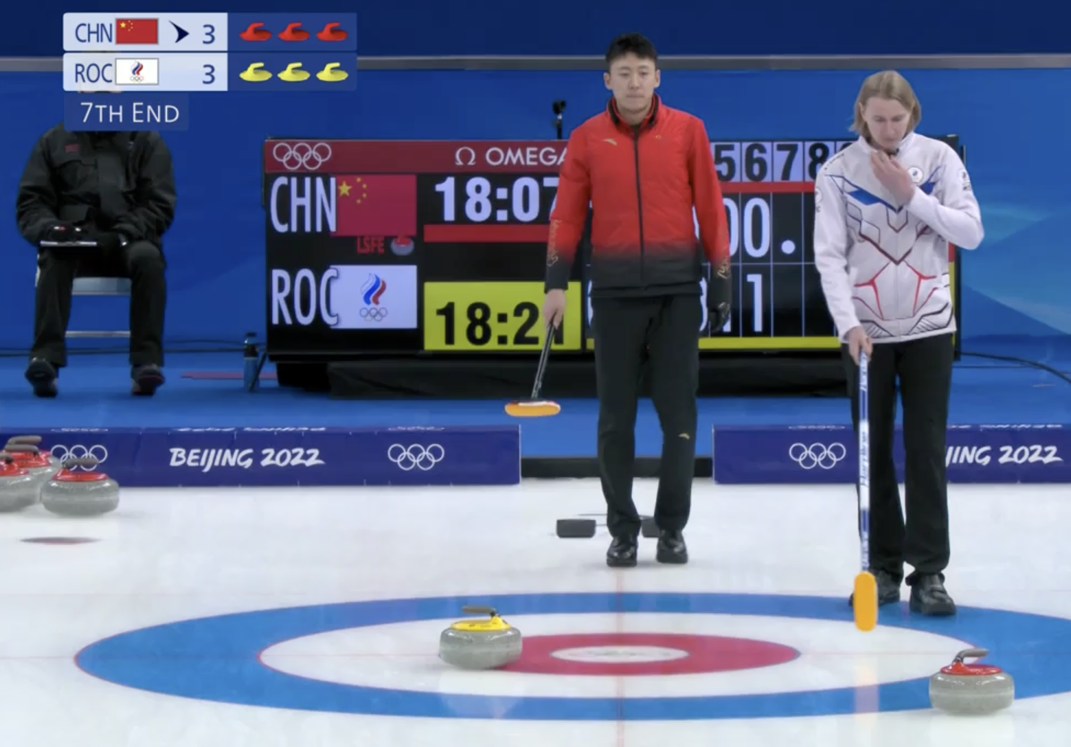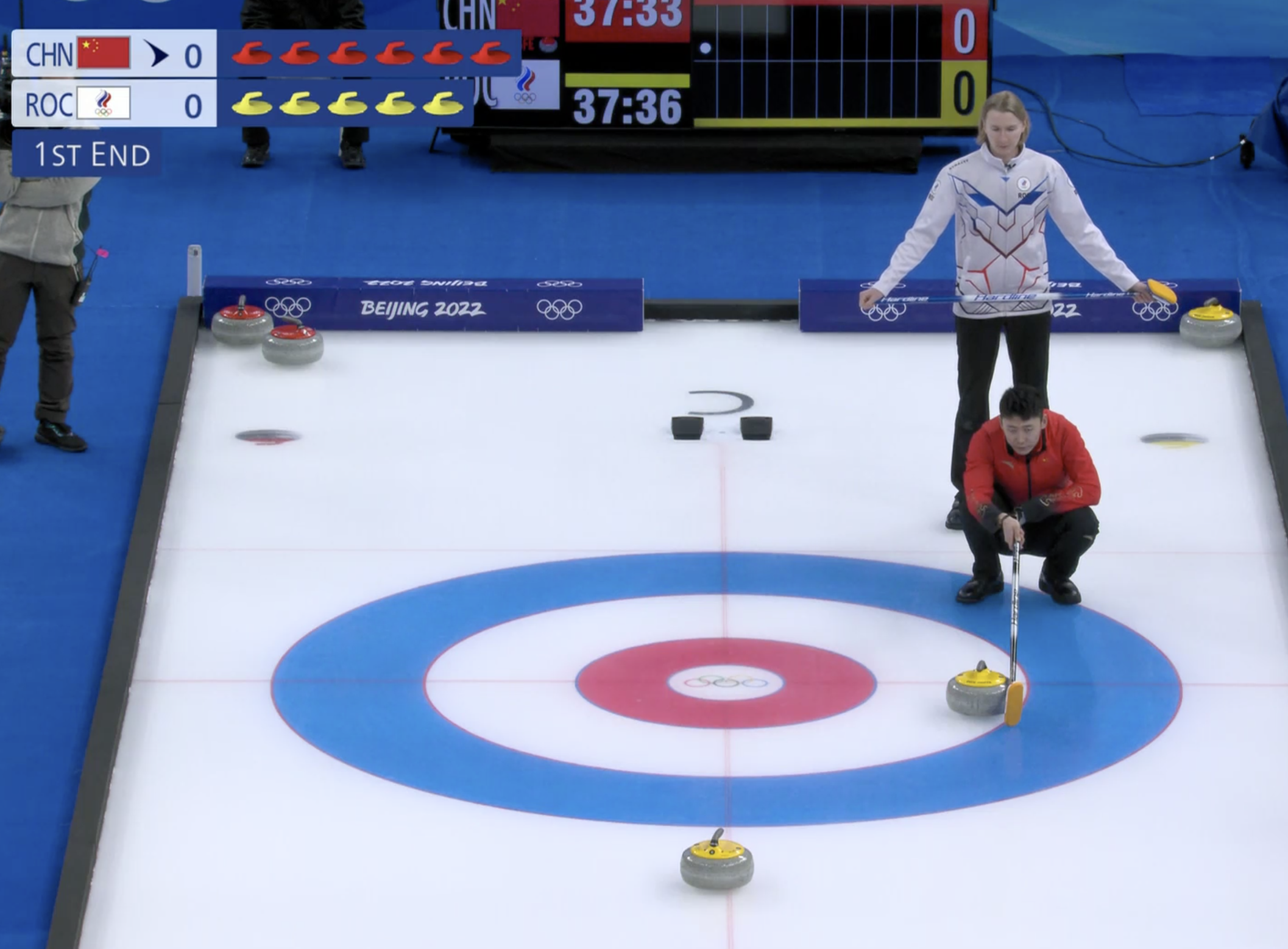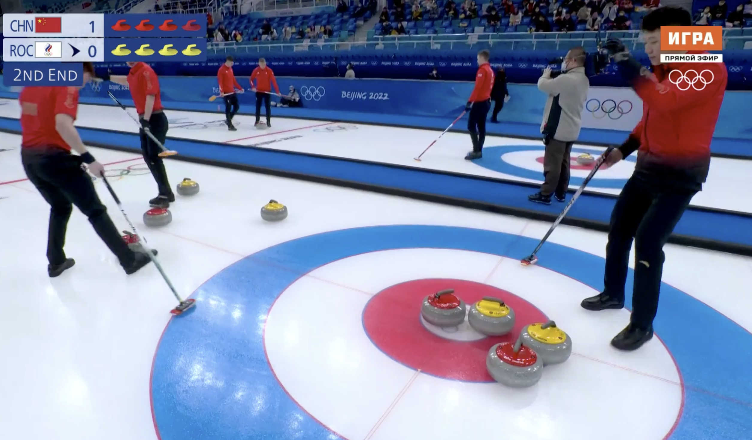 Не получилось обнулиться у китайцев, право последнего броска переходит к нашим парням во втором энде. Неплохое начало!