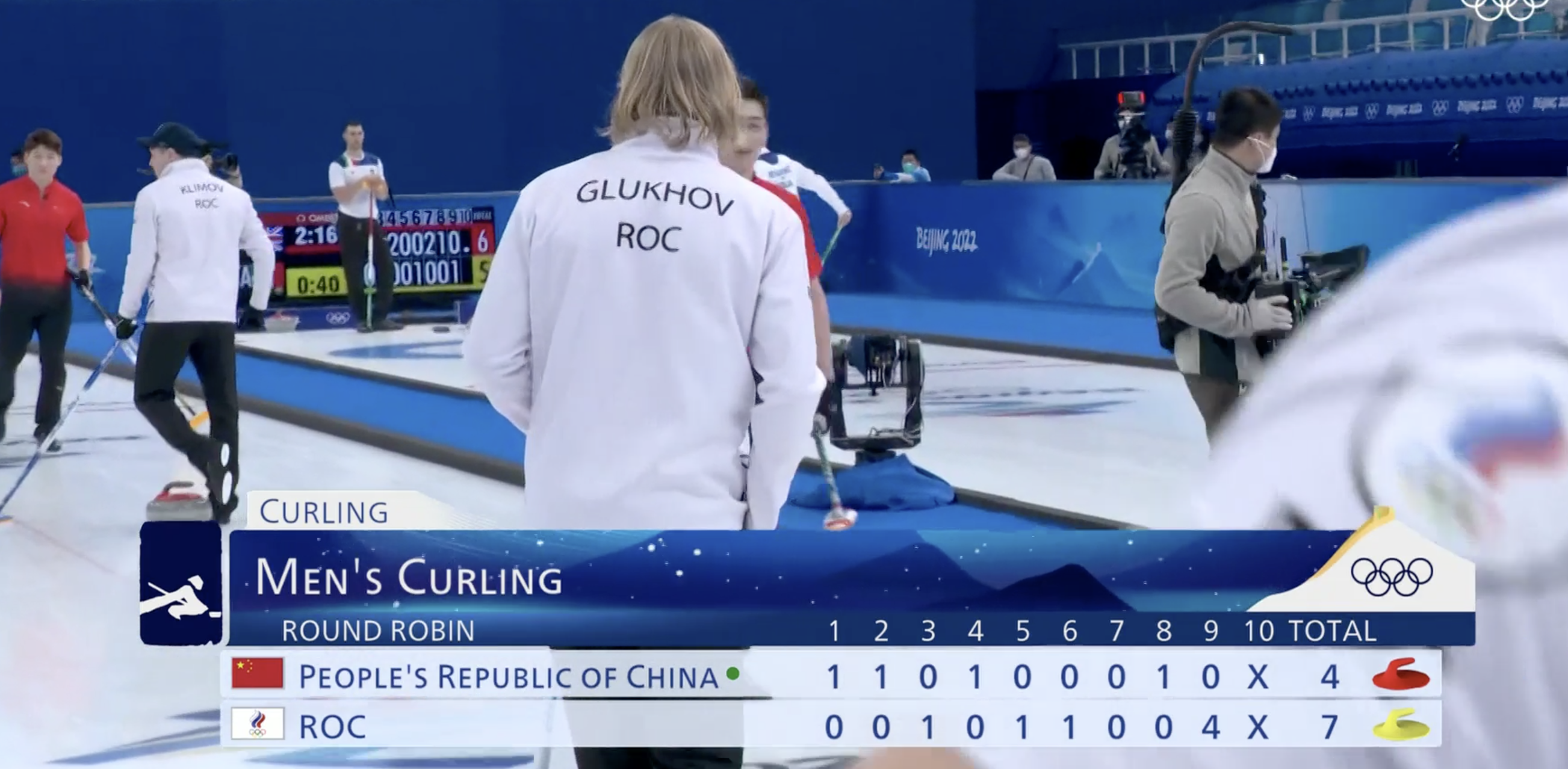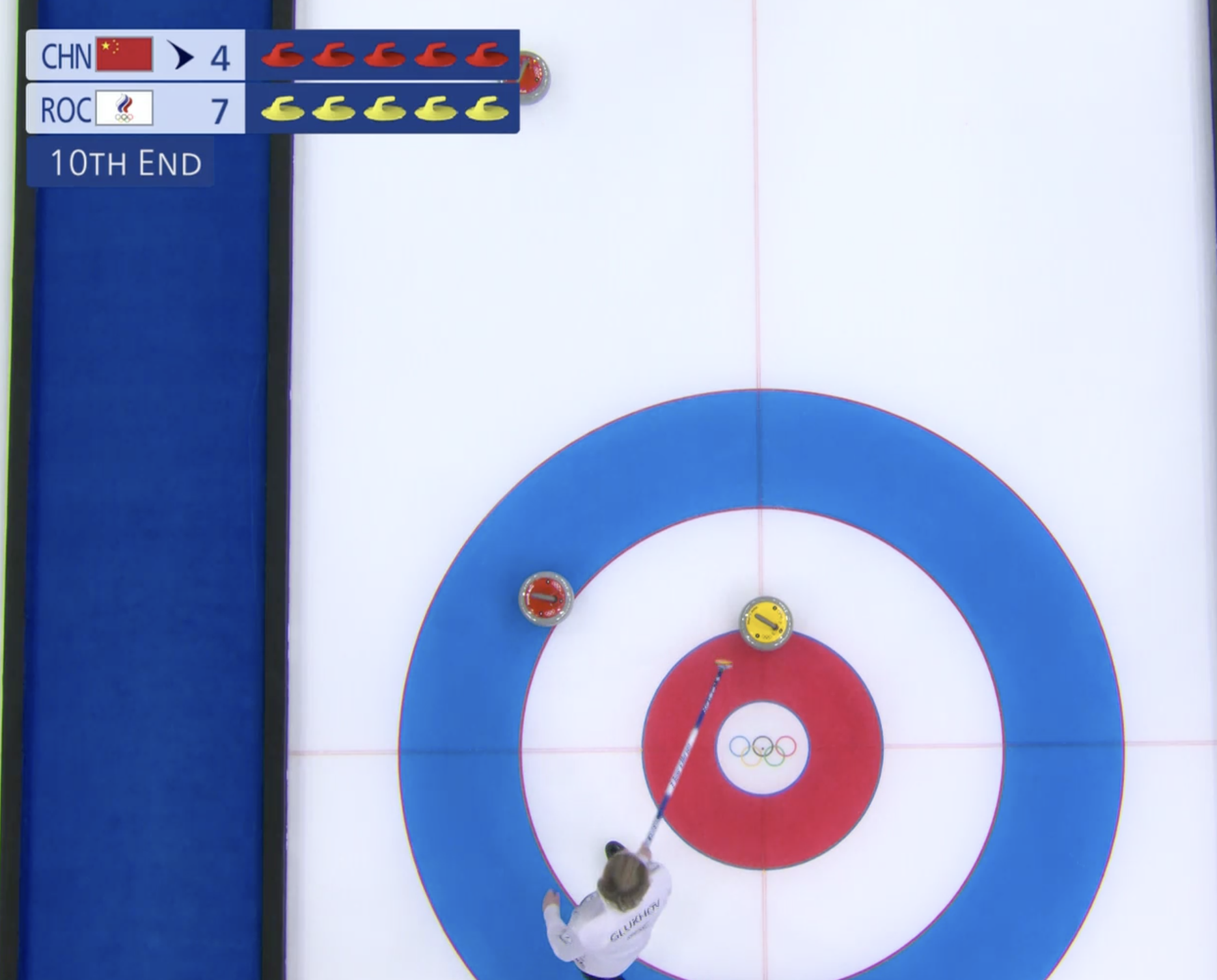 Если Сергей Глухов сейчас сделает идеальный бросок, то китайцы не смогут забрать камень после этого энда.