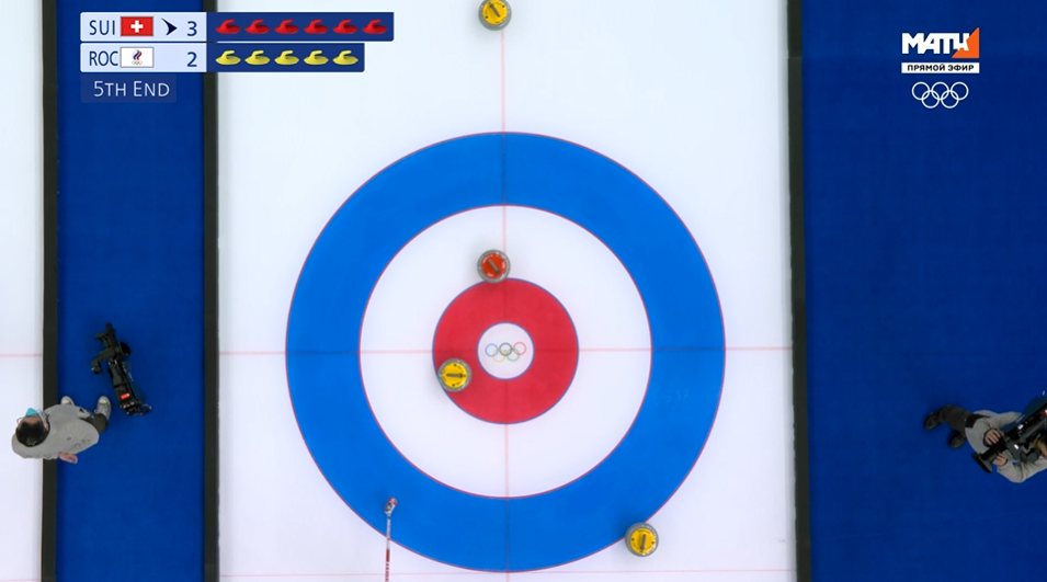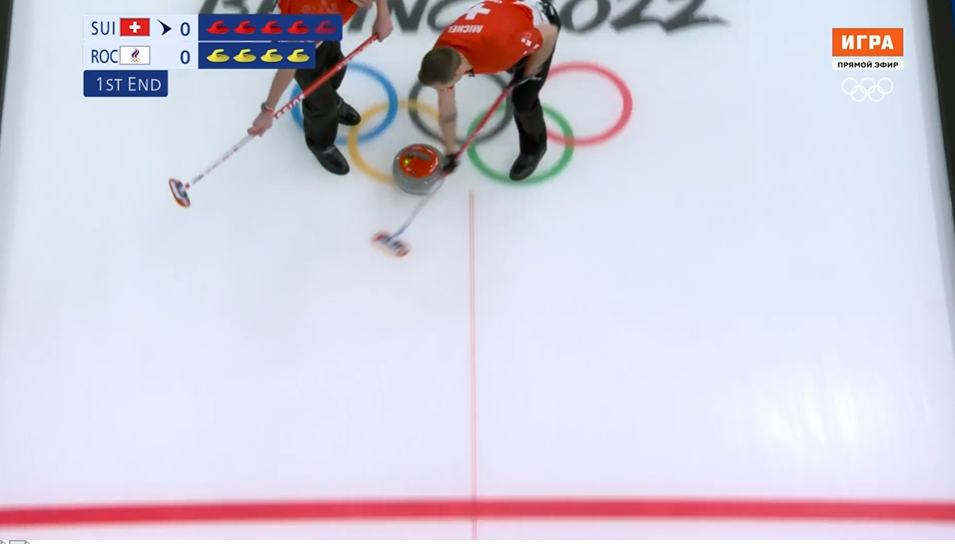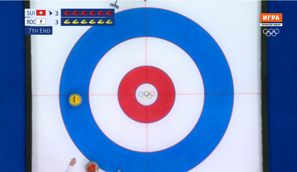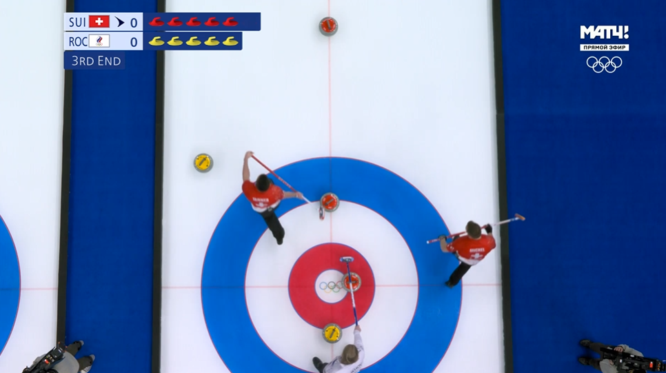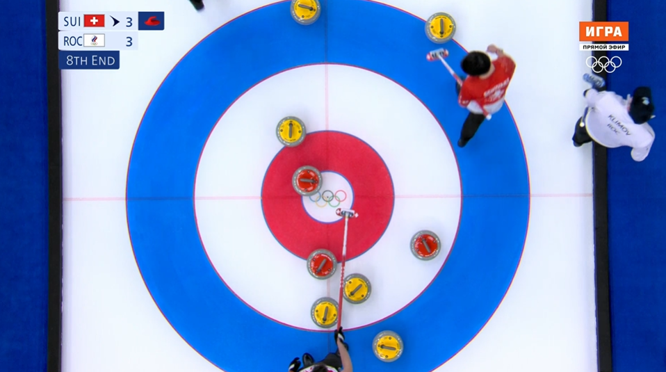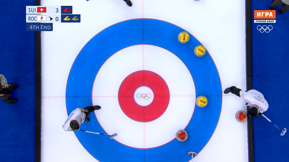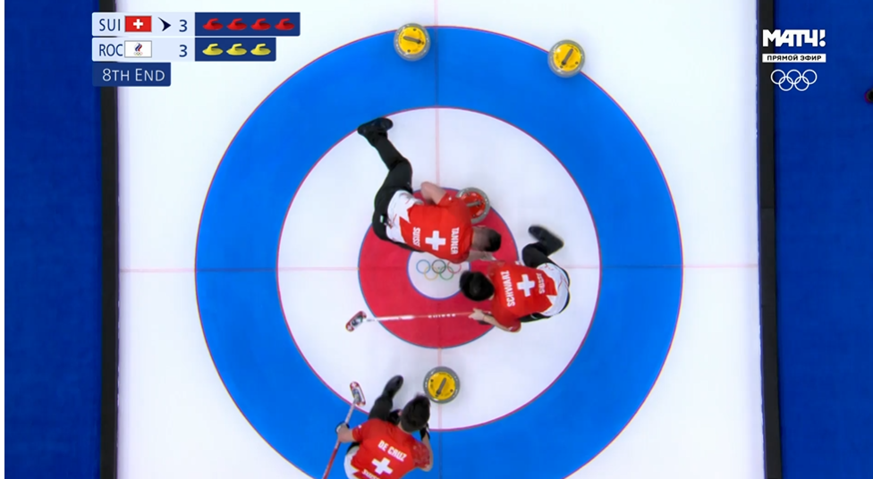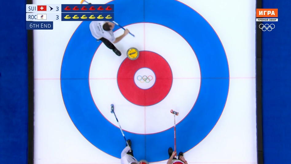 Не самый лучший бросок швейцарцев приводит к нулю в девятом энде. Счет 6:3 в пользу Швейцарии, право на последний бросок остается у России.