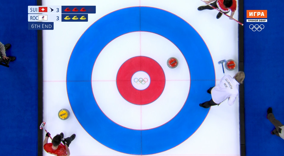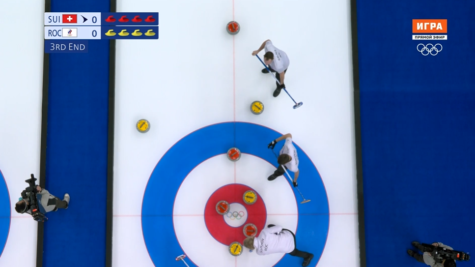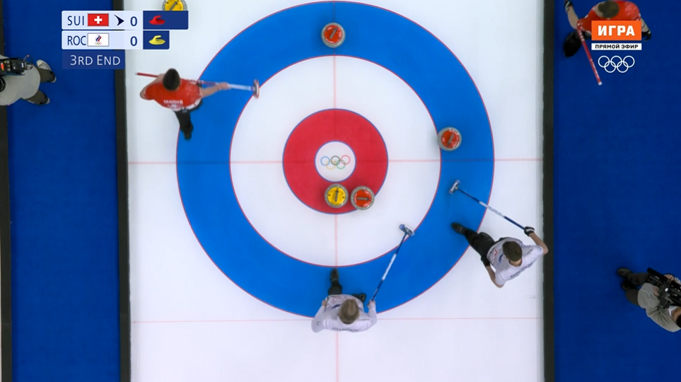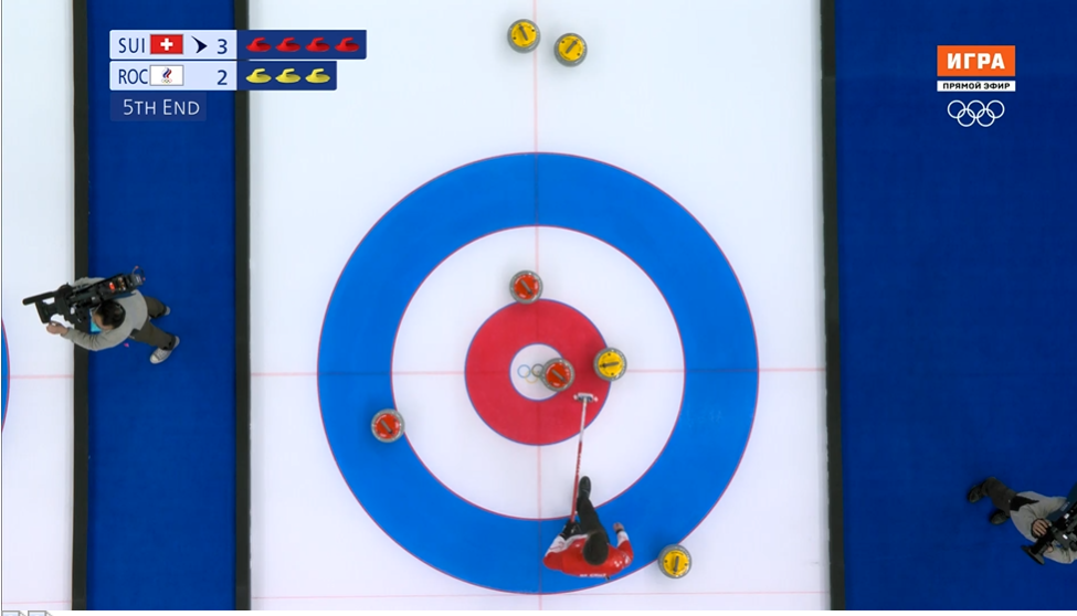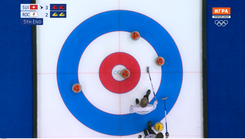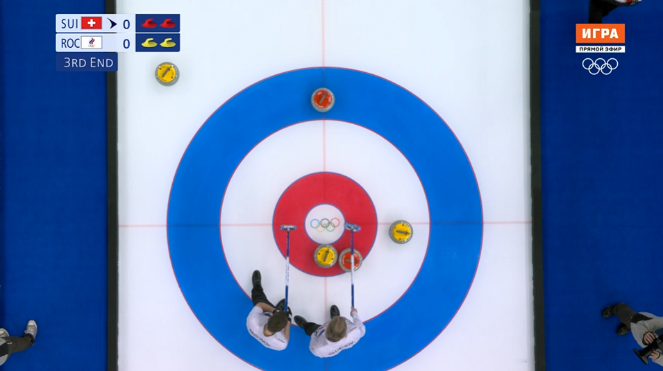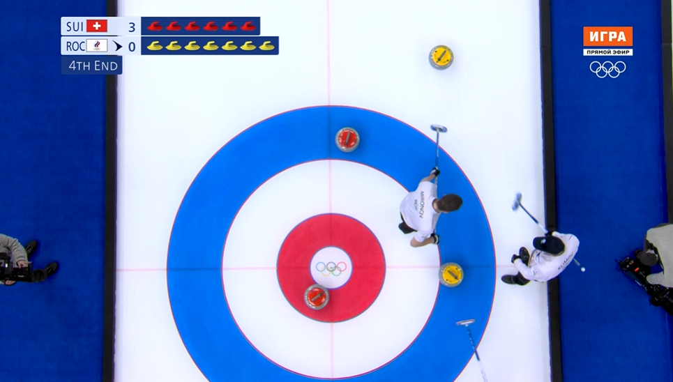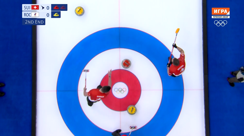 Не самый лучший бросок швейцарцев приводит к нулю в девятом энде. Счет 6:3 в пользу Швейцарии, право на последний бросок остается у России.