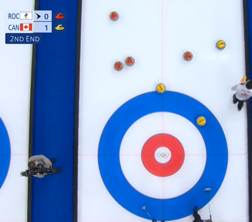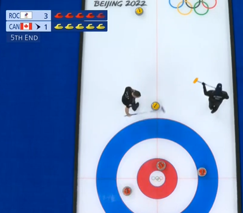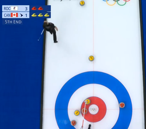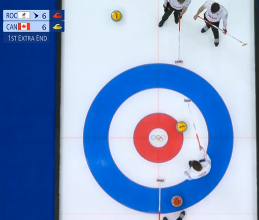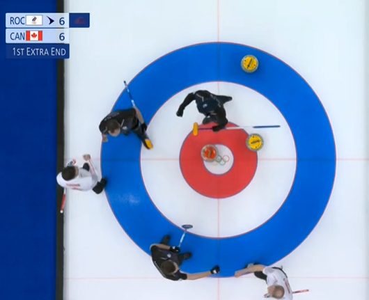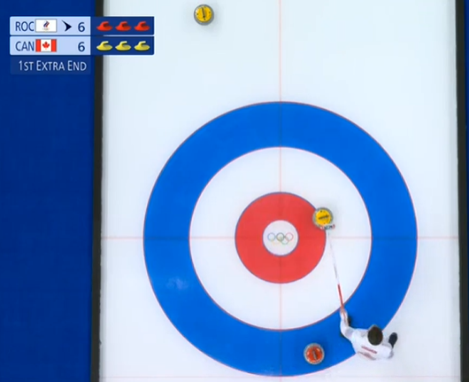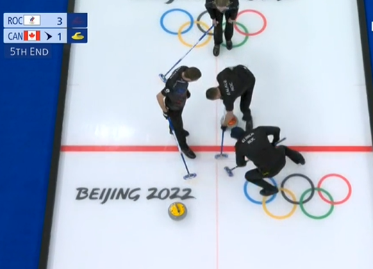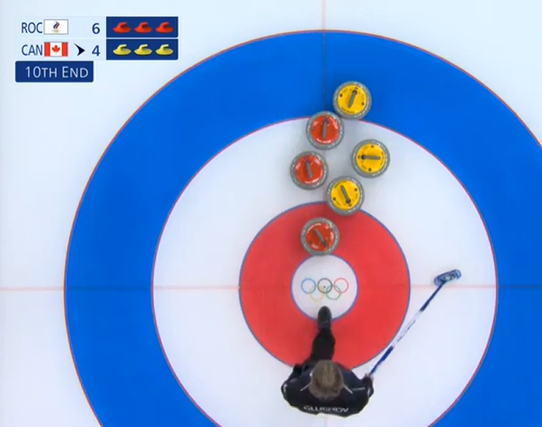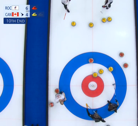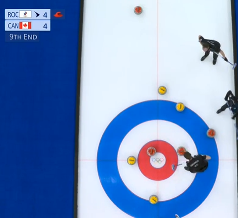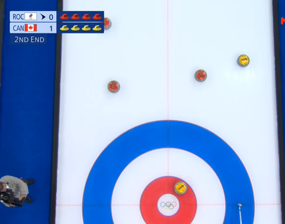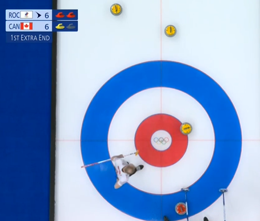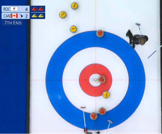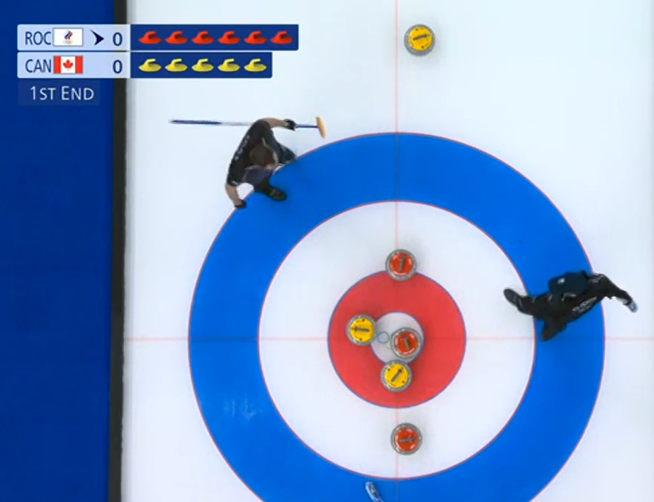 В один камень канадцы берут этот энд и у России будет право последнего броска. 3:2 в пользу наших после половины игры. Пятиминутный перерыв.